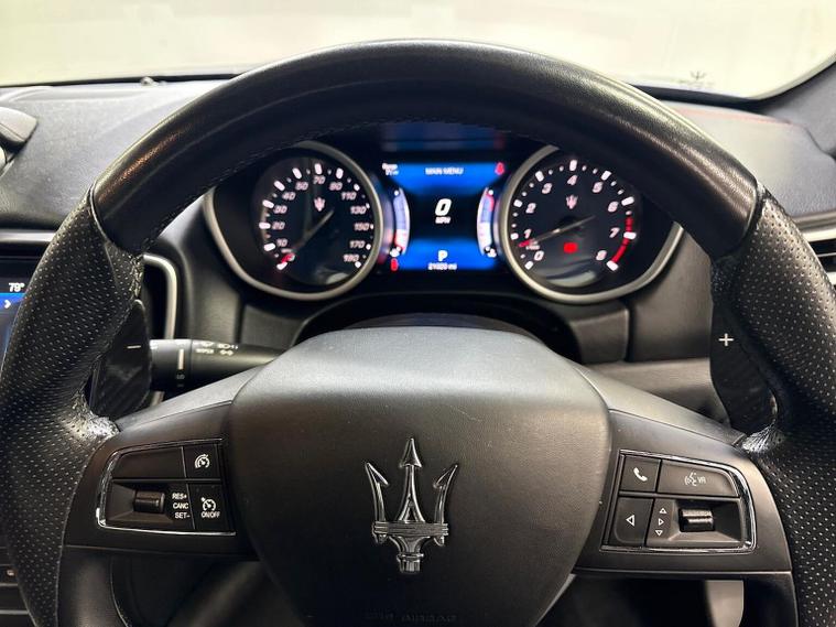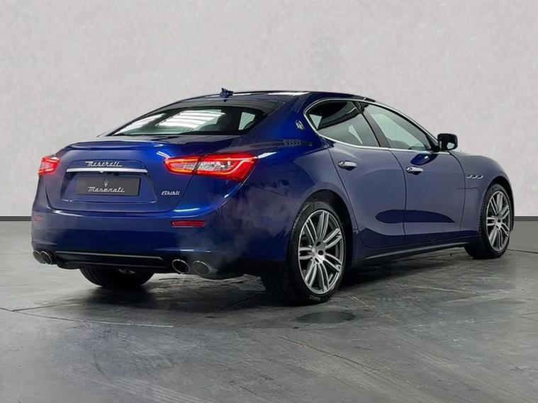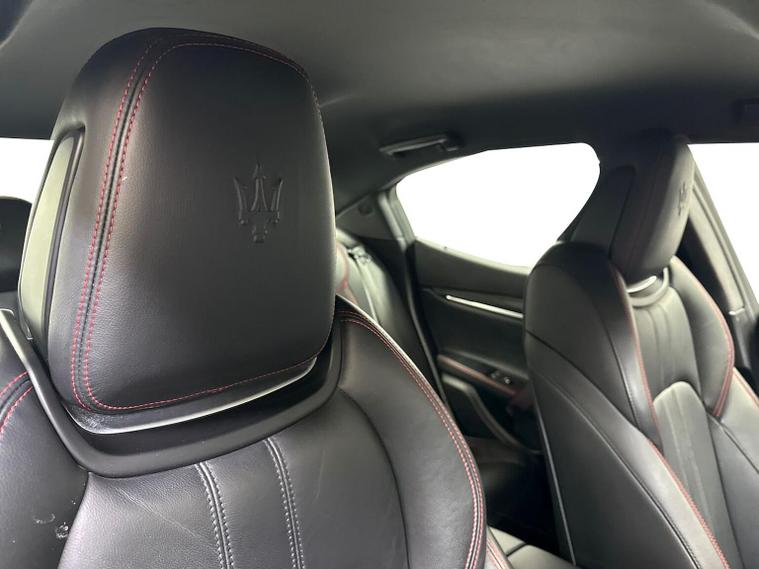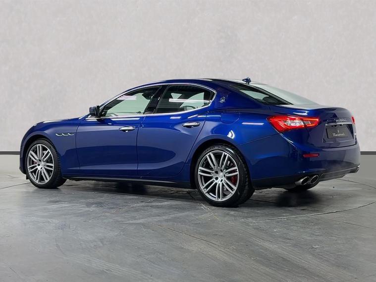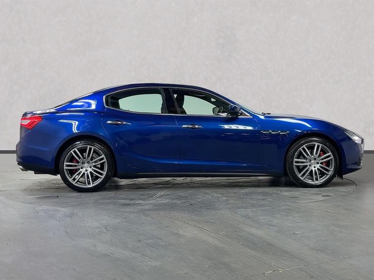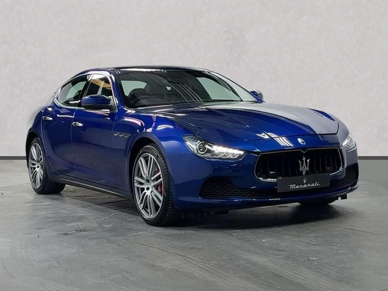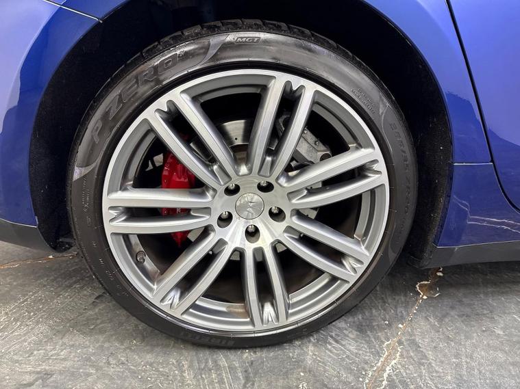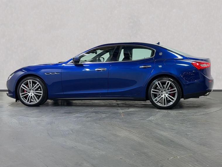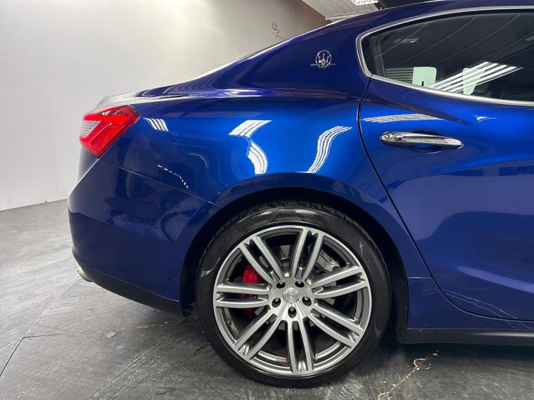 Ghibli V6 S - Blu Emozione Special Metallic with a Black Leather interior, stitched in contrast red. The factory options consist of - Sport Package, Red Brake Calipers, Carbon Fibre Interior Package, Heated Seats, and Extended Leather Interior.