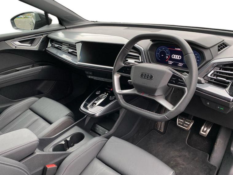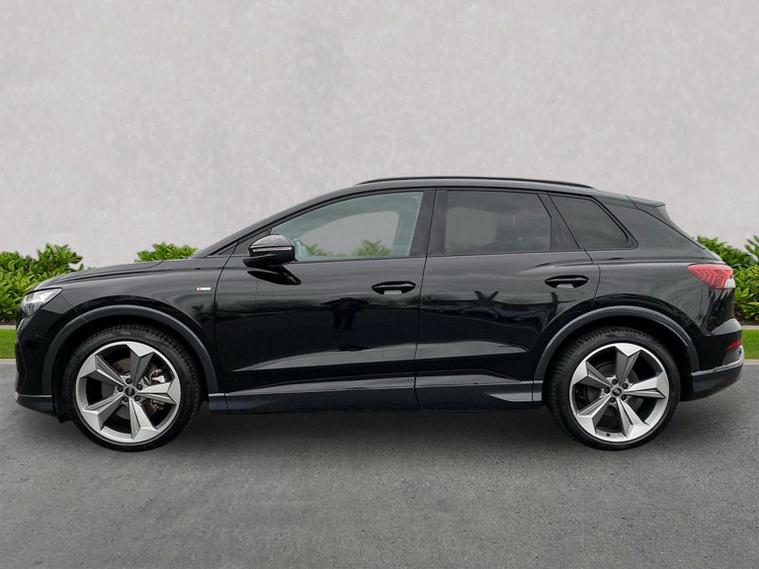 Reference: KO25AWM. Farnborough Audi are offering a rare opportunity to own this AUDI Q4 e-Tron 210kW 45 82kWh Black Edition 5dr Auto. This 1 owner vehicle has full service history, has been prepared for sale by our fully trained, experienced and skilled technicians passing our exacting pre sale checks and is ready to go. ===================================================================== Audi’s compact electric SUV, the Q4 e-tron delivers modern styling, a refined ride, and all the benefits of EV driving. Spacious and tech-focused, it’s perfect for those making the jump to premium electric mobility.Standard features on this car include Integrated SATELLITE NAVIGATION with real-time routing and traffic updates. CLIMATE CONTROL which automatically regulates cabin temperature for you. VIRTUAL COCKPIT so that you can customise the digital dashboard with maps, gauges, and media. CRUISE CONTROL to maintain a steady speed without constant pedal input. FRONT AND REAR PARKING SENSORS to help manoeuvring in tight spaces whether you are going forward or reversing. REAR CAMERA for easier and safer reversing. HEATED FRONT SEATS to keep your comfortable in cold weather conditions. Plus lots more. ===================================================================== 150 MULTI POINT CHECK | AUDI PARTS |FACTORY TRAINED TECHNICIANS 12 MONTH MANUFACTURER BACKED WARRANTY & ROADSIDE ASSISTANCE. AUDI CONNECTED|HISTORY CHECKS ===================================================================== Lookers are an authorised representative for a wide range of award-winning car manufacturers, providing you with an unparalleled choice of quality and approved used cars, currently for sale. Our exceptional standards ensure you receive the best possible service when you purchase with us, ensuring peace of mind when you drive away with your new vehicle. With us representing so many great brands we are an excellent position to offer you a fair and transparent price for your part exchange. At Lookers, we care about our customers and want to ensure that the price you see is the price you pay. Our Transparent pricing policy simply means, honest, straightforward pricing offering our vehicles at the best price possible; ensuring no haggling or hassle for you.