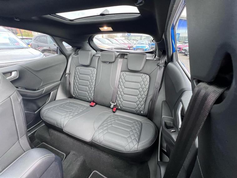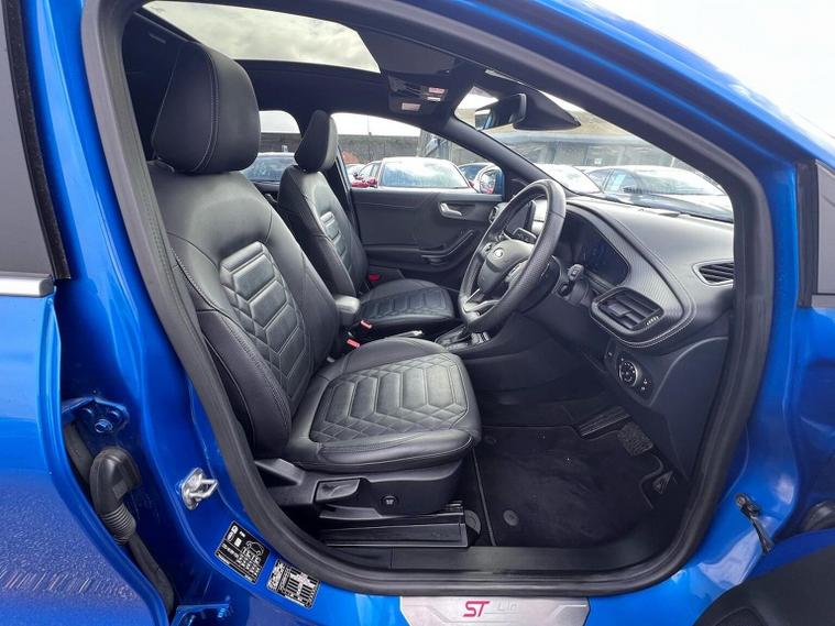 PANORAMIC OPENING SUNROOF, 19" UPGRADED ALLOY WHEELS, DRIVER ASSISTANCE PACK (INCLUDES ADAPTIVE CRUISE CONTROL with AVASIVE STEERING, ACTIVE PARK ASSIST, FRONT & REAR PARKING SENSORS, REAR PARKING CAMERA & BLIND SPOT TECHNOLOGY (BLIS)) AND HANDSFREE POWER TAILGATE. Other standard features include WINTER PACK (HEATED FRONT SEATS with MASSAGING FUNCTION & HEATED STEERING WHEEL), FULL ST-LINE BODY KIT WITH REAR SPOILER & PRIVACY GLASS, FIXED LED HEADLIGHTS, SATELLITE NAVIGATION with TOUCH SCREEN DISPLAY, COMPATIBLE WITH APPLE CAR PLAY + ANDROID AUTO, LANE KEEPING ASSIST, PRE-COLLISION ASSIST + AUTONOMOUS BRAKING, PEDESTRIAN & CYCLIST DETECTION, DUAL-ZONE CLIMATE CONTROL, FULL DIGITAL 12.3" DIGITAL COCKPIT, SELECTABLE DRIVING MODES, FORD EXTENDED MEGA BOX, KEY-FREE ENTRY + POWER START, POWER FOLDING DOOR MIRRORS, 4x ELECTRIC WINDOWS, FULL LUXURY LEATHER INTERIOR TRIM to really finish off that quality look & feel, ISOFIX SEATS & SO MUCH MORE. We're absolutely delighted to offer this truly stunning Puma ST Line Vignale as part of our Approved Used stock. This top of the range Puma Vignale miles is presented in absolutely stunning DESERT ISLAND BLUE metallic colour with contrasting luxury Vignale leather interior. We believe this excellent value Luxury Vignale with all options is a pure joy to drive with effective HYBRID TECHNOLOGY (155 bhp) delivering smooth & efficient power on every surface. This car needs to be viewed and driven to be truly appreciated so why wait, call now to enquire***FULL SERVICE HISTORY / 2 YEAR SERVICE INTERVALS***Lookers Ford Sheffield (S4 7UQ) ARE A FORD APPROVED RETAILER. WE OFFER COMPETITIVE FINANCE RATES AND ALL OUR VEHICLES ARE THOROUGHLY INSPECTED & HPI CLEAR. AS PART OF THE LOOKERS LIMITED GROUP, WE HAVE ACCESS TO OVER 40 DIFFERENT BRANDS, SO WE ARE BEST PLACED TO FIND THE CORRECT VALUE FOR YOUR PART EXCHANGE. BUY WITH CONFIDENCE FROM A COMPANY ESTABLISHED IN 1908. LOOKERS A GOOD DEAL, BETTER** PLEASE CALL NOW FOR MORE INFORMATION & A PERSONALISED VIDEO SHOWING YOU YOUR NEXT CAR t: 01143389217 Unless otherwise stated, vehicles may have previously been used for business or hire purposes and so may have had multiple users. Where we hold documents relating to vehicle history, these are available for inspection on request.
