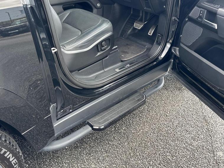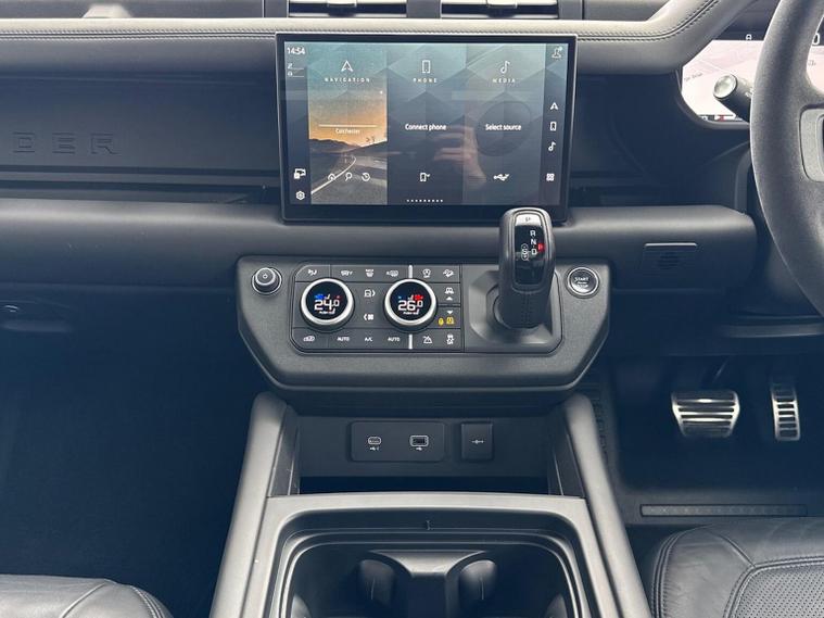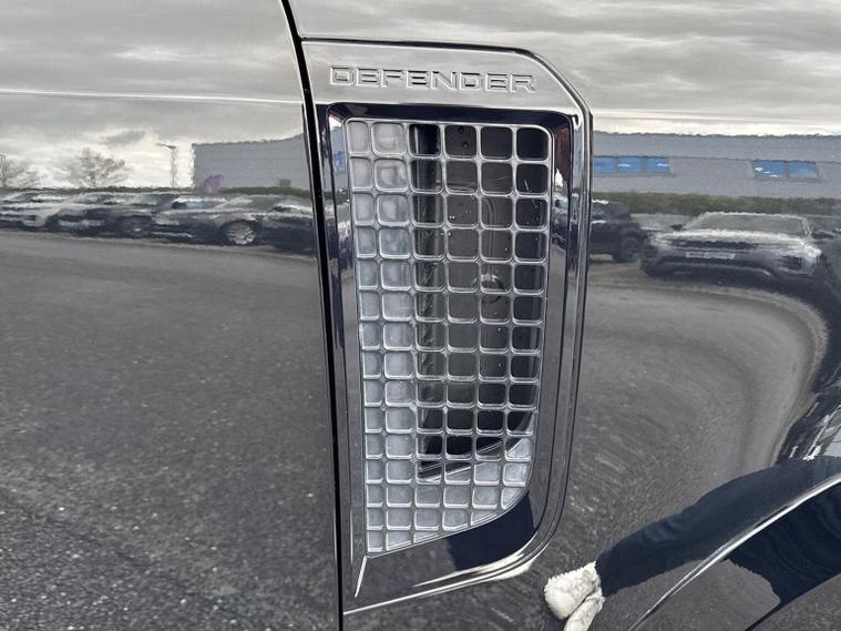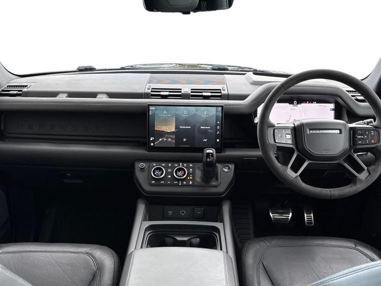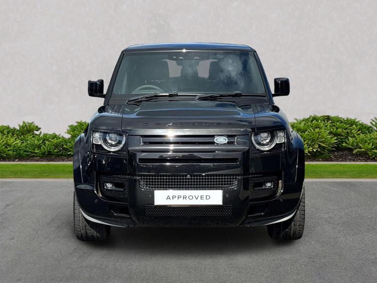 Introducing this exceptional Land Rover Defender 5.0 P525 V8, a striking three-door example showing 48, 074 miles and finished in the commanding and highly desirable Santorini Black. This deep, glossy metallic finish perfectly complements the Defender’s muscular proportions, giving it an unmistakable presence that blends heritage design with modern performance. As the flagship V8 model, it delivers an extraordinary combination of power, refinement and capability, with the 525PS supercharged petrol engine providing exhilarating acceleration and a truly engaging driving experience across all environments. This example features the Extended Black Exterior Pack, enhancing its bold and stealthy appearance with darkened detailing that contrasts beautifully against the Santorini Black bodywork. The look is further elevated by the imposing 22-inch Style 5098 alloy wheels, giving the vehicle a purposeful stance and exceptional road presence. Practicality is enhanced with fixed side steps, making entry and exit effortless, while the body-coloured spare wheel cover provides a clean and cohesive finish to the rear profile. Inside, the cabin is appointed in luxurious Ebony Windsor leather with a matching Ebony interior, creating a refined and sophisticated environment that reflects the Defender’s premium positioning. The interior is further elevated by features such as the refrigerator compartment, perfect for keeping refreshments chilled on long journeys, and a head-up display, which projects key driving information directly into the driver’s line of sight for enhanced convenience and safety. This Defender also benefits from Secure Tracker Pro, providing enhanced security and peace of mind (subscription required) For those who require additional capability, this example is equipped with an electrically deployable tow bar, offering impressive towing convenience at the touch of a button while maintaining the Defender’s clean exterior lines when not in use. As an Approved Used Land Rover from Lookers, this Defender has undergone rigorous inspection and full provenance checks, ensuring complete confidence in its quality and condition. It will also include 12 months warranty, providing additional reassurance and peace of mind throughout your ownership. We offer tailored part-exchange valuations, competitive finance solutions and flexible purchasing options including Click & Collect, all supported by our dedicated aftersales team throughout your ownership.