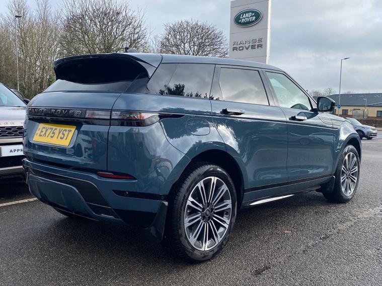 This 2025 Land Rover Range Rover Evoque D200 Edition is a Land Rover manufacturer approved vehicle with a full service history and only one owner from new. This Four Wheel Drive model features a 2.0L Diesel Engine and meets Euro 6 emission standards. Notable features include Blind Spot Assist, panoramic sunroof, LED Headlights with Signature DRL, Two Zone Climate Control, Front and Rear Parking Aid with Autobrake, and Android Auto / Apple Carplay compatibility. This Range Rover Evoque D200 Edition offers impressive performance and efficiency, with a fuel economy of 45 mpg and low CO2 emissions, indicating it is more economical than many similar vehicles. Its acceleration from 0-60mph in just 7.9 seconds demonstrates its responsive power, setting it apart from other cars in its class.