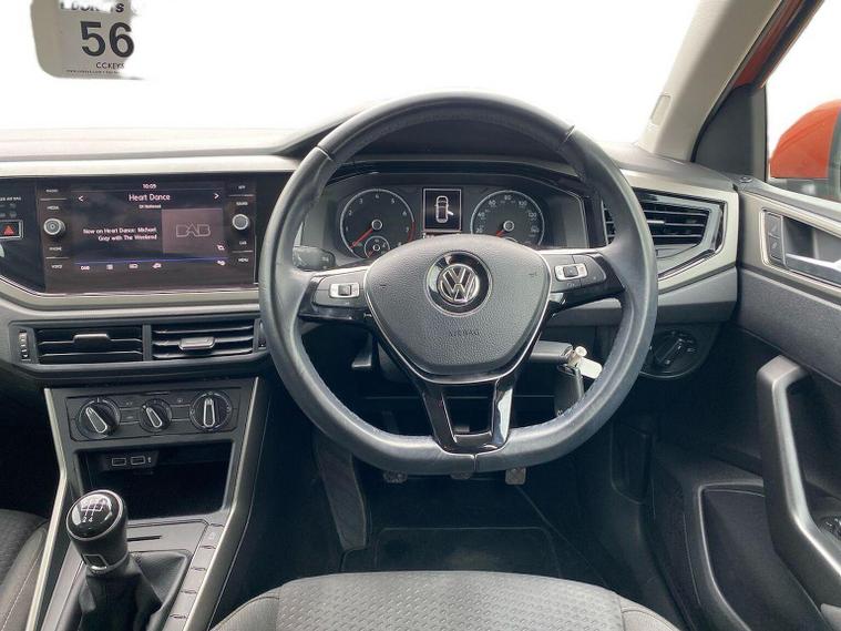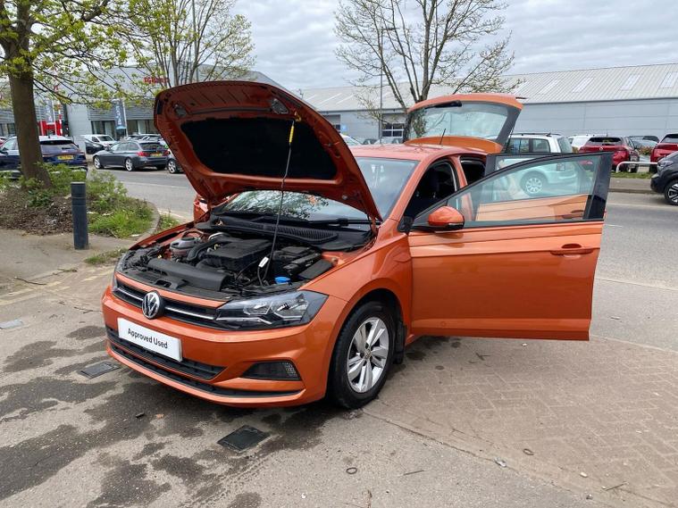 Volkswagen Polo – Energetic Orange Metallic – Well-Equipped Example with App-Connect and Alloy Wheels Finished in Energetic Orange Metallic with a Titanium Black/Ceramique interior, this Polo offers a vibrant, standout colour combined with a solid list of comfort, safety and infotainment features. A stylish, efficient and well-specified supermini. Key Features Exterior Energetic Orange Metallic paint 15" Sassari alloy wheels (5.5J x 15) 185/65 R15 low-rolling-resistance tyres Anti-theft wheel bolts Clean, modern styling with strong visual appeal Interior Titanium Black/Ceramique interior Jacara cloth upholstery Leather-wrapped multifunction steering wheel Leather gearshift knob and leather handbrake lever Infotainment & Connectivity Composition Media (MIB Gen 2) infotainment system 6-speaker audio system Car-Net App-Connect Bluetooth mobile phone interface AM/FM diversity antenna USB interfaces including iPod/iPhone compatibility DAB digital radio Comfort & Convenience Manual air conditioning Dust and pollen filter Easy-to-use controls and well-organised dashboard Safety & Security Anti-theft alarm system with interior monitoring, backup horn and towing protection Remote central locking with two folding keys Strong standard safety equipment