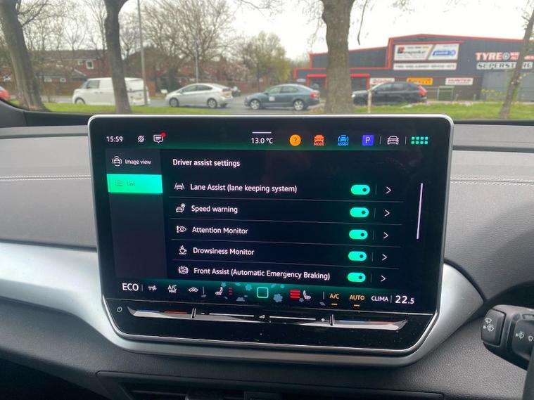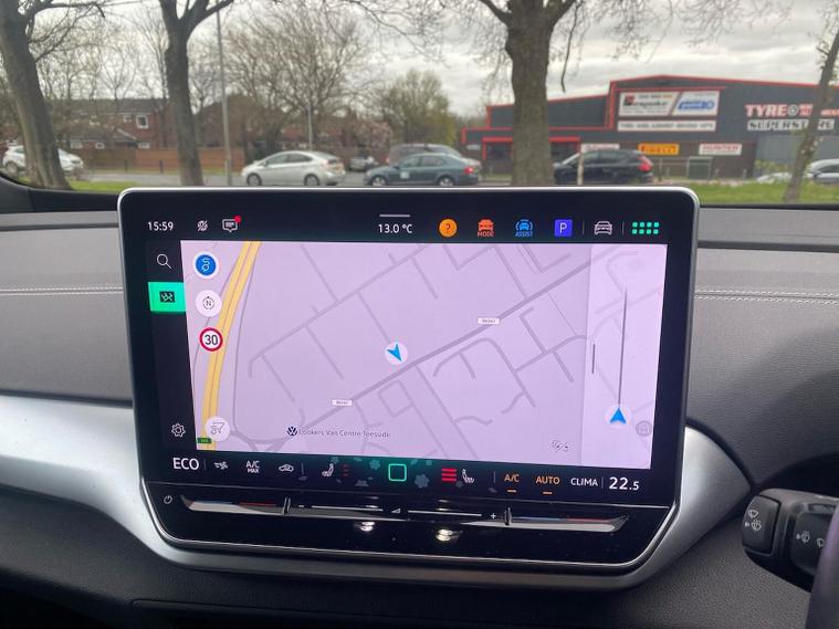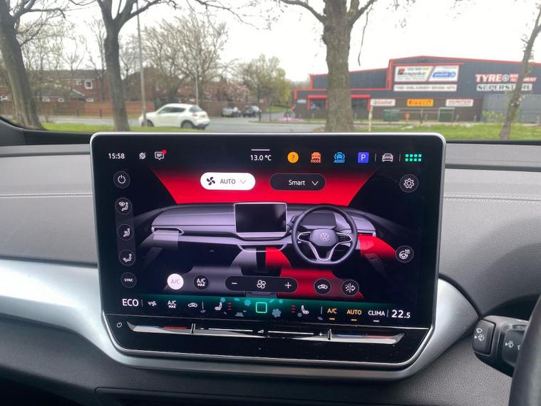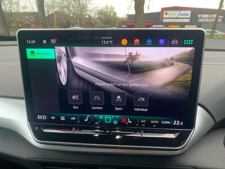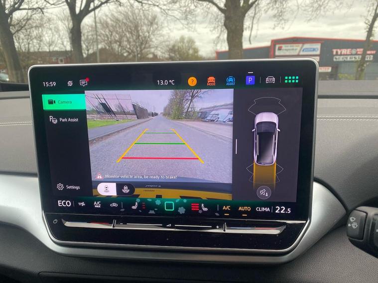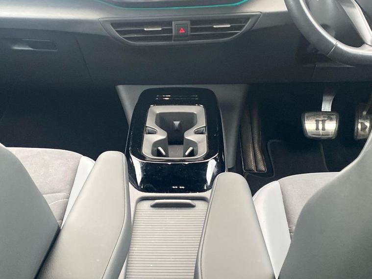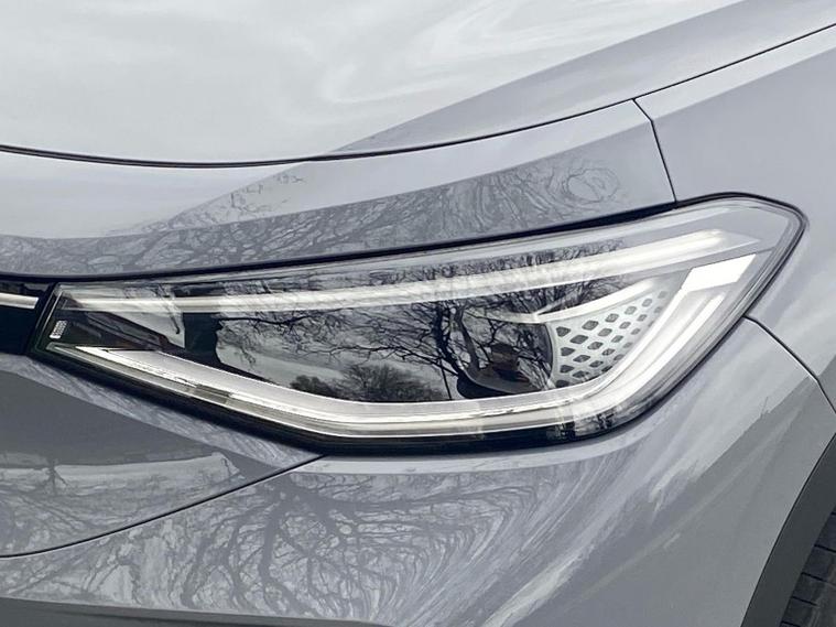 Volkswagen ID.4 Match 77kWh Pro 286PS finished in Moonstone Grey with contrasting Black roof, featuring Soul Black–Platinum Grey interior. This well-specified 5-door automatic offers a refined all-electric driving experience with premium comfort and technology throughout. Exterior styling includes illuminated door handle recesses and grille, Matrix LED headlights with dynamic light assist, LED rear lights with dynamic indicators, tinted rear glass and silver roof rails as part of the bi-colour style pack. Easy Open & Close electric tailgate with virtual pedal adds convenience, while the 19" Hamar Black diamond-turned alloys enhance the overall look. Inside, the Interior Style package provides Art Velours microfleece comfort seats, heated leatherette-wrapped multifunction steering wheel with touch controls, ambient lighting with 30 colour options and a versatile rear bench with split folding backrest and armrest. Comfort is further boosted with heated front seats, Air Care Climatronic dual-zone climate control, climate windscreen, rain sensor and multiple USB-C ports including high-power 45W charging. Technology is comprehensive thanks to the Discover Pro navigation system, wireless smartphone charging, and assistance features including Park Assist Plus with sensors front and rear, rear-view camera, proactive passenger protection, keyless entry and start, alarm with interior protection and exterior ambient elements. With its high-capacity 77kWh battery, smooth 1-speed automatic drivetrain and 286PS output, this ID.4 delivers strong performance, impressive range and a quiet, effortless drive.