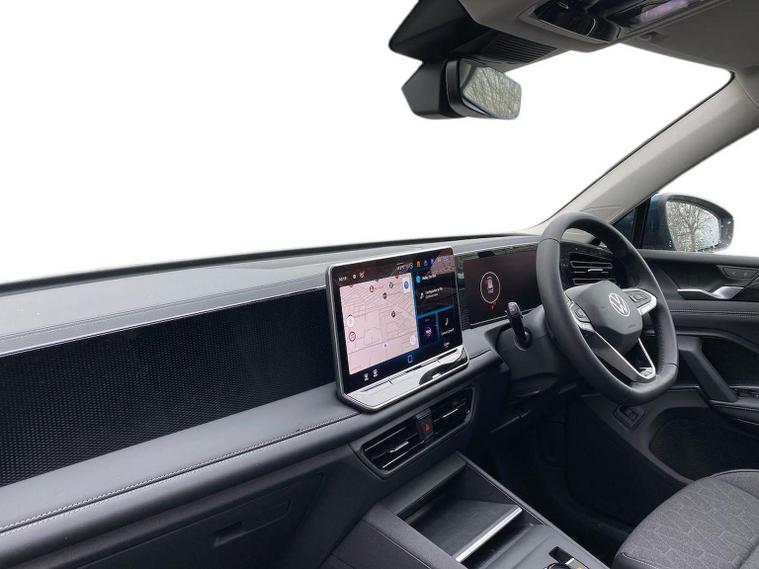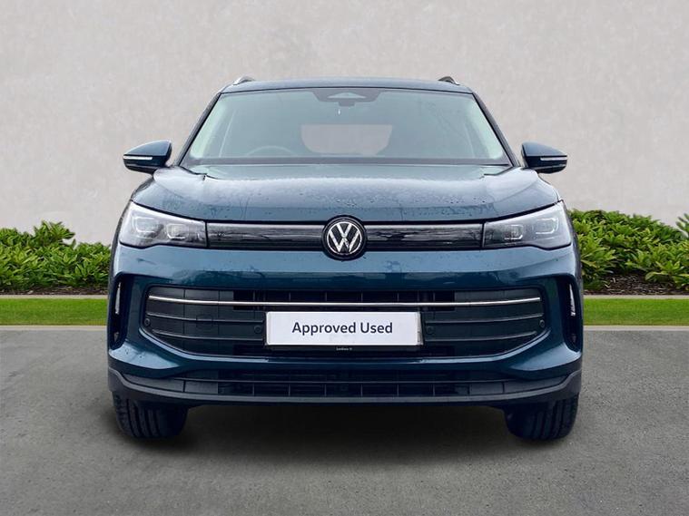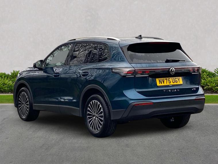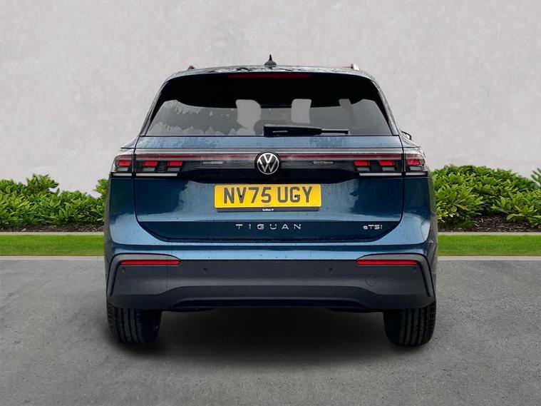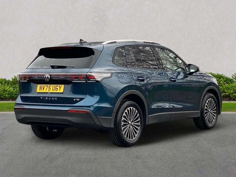Volkswagen Tiguan Match 1.5 eTSI 150PS finished in Nightshade Blue Metallic with Melange-Soul interior, offering a smooth and efficient 7-speed DSG drive combined with a superb specification. Sleek styling is enhanced by silver roof rails, 90% tinted laminated safety glass from the B-pillar back and striking 18" Napoli black diamond-turned alloys. Convenience is boosted with the Comfort Package, adding Keyless Entry, Easy Open & Close electric tailgate, alarm with interior protection and Park Assist Pro with Remote Park Assist plus memory function. The Light Package elevates the look further with illuminated Lightline between the headlamps, illuminated door handle recesses and front/rear illuminated logos, complemented by LED headlamps with dynamic cornering light, poor-weather light, 3D LED rear lamps and interior ambient lighting. Technology is extensive with Discover Media Navigation, IDA voice assistant, high-power USB-C ports front and rear and wireless charging. Safety features are exceptional, including Adaptive Cruise Control, Front Assist with pedestrian and cyclist monitoring, oncoming vehicle braking when turning, lane assist, side assist, rear traffic alert, exit warning, driver and passenger airbags with deactivation, rear side airbags, predictive speed limiter, dynamic road sign display, ISOFIX including i-Size and a multifunction front camera, plus a rear-view camera system for additional confidence.