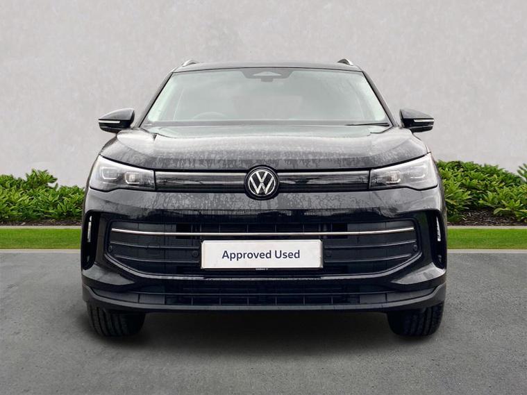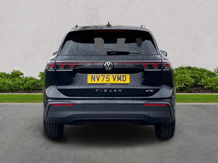 Volkswagen Tiguan Match 1.5 eTSI 130PS finished in Grenadilla Black Metallic with Melange-Soul interior, offering a refined and efficient 7-speed DSG drive with an excellent level of comfort, technology and safety. The Design Package adds silver roof rails and 90% tinted laminated safety glass for a premium look and improved cabin privacy, while the striking 18" black diamond-turned Napoli alloys complete the exterior. Convenience is boosted with the Comfort Package, including Keyless Entry, Easy Open & Close electric tailgate and an alarm with interior protection. Park Assist Pro with memory function and full Park Distance Control enables Remote Park Assist, making tight manoeuvres effortless. The Light Package adds illuminated Lightline between the headlamps, illuminated logos and handles, plus advanced LED headlamps with dynamic cornering light, poor-weather light, 3D LED rear lamps and ambient interior lighting with ten colours. Technology is comprehensive thanks to Discover Media Navigation with streaming and internet, IDA voice assistant, wireless smartphone charging and high-power USB-C ports front and rear. Safety is exceptional, featuring Adaptive Cruise Control, Front Assist with pedestrian and cyclist monitoring, lane assist, side assist, rear traffic alert, exit warning system, predictive speed limiter, dynamic road sign display, multifunction front camera, rear-view camera, ISOFIX with i-Size compatibility, airbags front and rear including rear side airbags and oncoming vehicle braking with swerve support. A stylish, well-equipped and efficient Tiguan offering strong practicality, premium features and advanced driver assistance throughout.