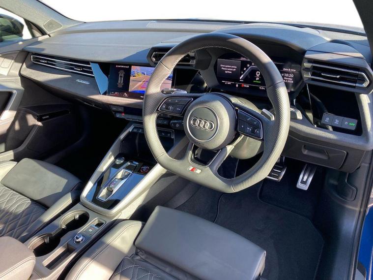 Reference: RO75XYX. Farnborough Audi are offering a rare opportunity to own this AUDI A3 S3 SPORTBACK BLACK EDITION S-TRONIC 333PS. This vehicle was registered by us for use by one of our colleagues & has been maintained by us in accordance with the manufacturers recommendations. The vehicle is now being readied for sale & as such represents a strong saving against the price of purchasing this as a brand new vehicle. In preparation for sale this vehicle has had all of it's software updates carried out and has passed our internal pre sale checks. - In accordance with the manufacturers requirement, this vehicle is sanctioned for handover from this month. ===================================================================== Sporty, compact, and refined, the S3 packs a turbocharged punch with sharp dynamics and premium design. It’s quick, comfortable, and well-equipped, perfect for those who want performance without going full RS. A strong entry into the Audi S range.Standard features on this car include Integrated SATELLITE NAVIGATION with real-time routing and traffic updates. SATELLITE NAVIGATION via APPLE CAR PLAY which allows integration using apps like Maps to help manage your journeys. FULL LEATHER delivering a luxury feel in the cabin. CLIMATE CONTROL which automatically regulates cabin temperature for you. VIRTUAL COCKPIT so that you can customise the digital dashboard with maps, gauges, and media. CRUISE CONTROL to maintain a steady speed without constant pedal input. FRONT AND REAR PARKING SENSORS to help manoeuvring in tight spaces whether you are going forward or reversing. REAR CAMERA for easier and safer reversing. HEATED FRONT SEATS to keep your comfortable in cold weather conditions. Plus lots more. ===================================================================== 150 MULTI POINT CHECK | AUDI PARTS |FACTORY TRAINED TECHNICIANS 12 MONTH MANUFACTURER BACKED WARRANTY & ROADSIDE ASSISTANCE. AUDI CONNECTED|HISTORY CHECKS ===================================================================== Lookers are an authorised representative for a wide range of award-winning car manufacturers, providing you with an unparalleled choice of quality and approved used cars, currently for sale. Our exceptional standards ensure you receive the best possible service when you purchase with us, ensuring peace of mind when you drive away with your new vehicle. With us representing so many great brands we are an excellent position to offer you a fair and transparent price for your part exchange. At Lookers, we care about our customers and want to ensure that the price you see is the price you pay. Our Transparent pricing policy simply means, honest, straightforward pricing offering our vehicles at the best price possible; ensuring no haggling or hassle for you.