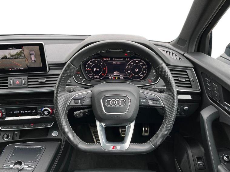 Viewing available 7 days a week at Lookers Birmingham. We have this HIGH-SPEC Audi Q5, finished in the stunning Daytona Grey paintwork and rolling on impressive 21-inch alloy wheels. Supplied with 2 keys, this example also benefits from a full Audi service history, showing it has been maintained to the highest standards throughout its life. Fully prepped to our industry leading OEM standards here at Lookers Birmingham including a service and MOT, it’s ready for its next owner to drive away with complete confidence. The Audi Q5 40 TDI Vorsprung is one of the highest-spec versions of the Q5 range, combining strong diesel performance, quattro all-wheel drive and a premium, feature-packed interior. Its 190?ps engine paired with the smooth S Tronic automatic gearbox delivers refined, confident performance with excellent long-distance comfort. This example comes with an exceptional level of added specification. It includes a full 360-degree camera system for outstanding visibility when parking, along with a panoramic roof and opening sunroof that brighten the cabin and add a sense of space. Tinted windows and roof rails enhance the exterior, while the powered tailgate adds everyday convenience. The interior features full leather upholstery with S embossing in the seats, heated front seats and Audi’s high-quality finish throughout. Technology and comfort are further boosted with Apple CarPlay and Android Auto, cruise control, and adaptive cruise control for relaxed motorway driving. The Vorsprung trim also includes advanced driver-assistance features, and the electric tailgate makes loading effortless. With its luxurious interior, advanced technology, quattro capability and impressive Vorsprung specification, the Audi Q5 40 TDI stands out as a premium, comfortable and highly capable SUV that delivers refinement and practicality in equal measure. This car is Clean air zone compliant and does not attract any form of charge in Birmingham clean Air Zone. We understand that you rely on your car, so every car we sell is fully prepared to main dealer standard, for your peace of mind. All our vehicles pass a thorough 150 point check, are serviced and MOT’d as required by manufacturer trained technicians and are offered with up to 4 years warranty. Every car we sell is HPI clear so you can have the confidence that by choosing Lookers for your next purchase, you are choosing your perfect car. Competitive finance packages and nationwide delivery available. ESTABLISHED IN 1908, LOOKERS HAVE OVER 100 YEARS EXPERIENCE IN THE TRADE. BOOK YOUR TEST DRIVE NOW.