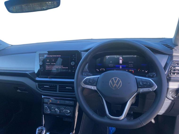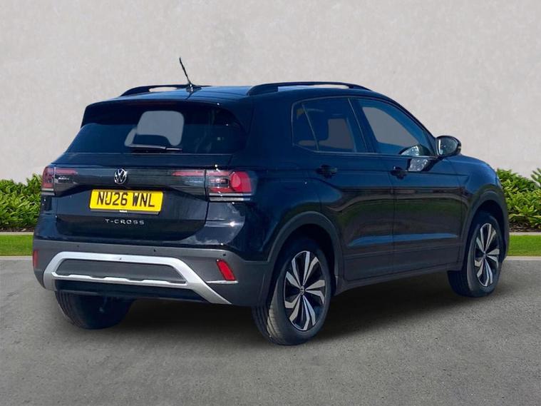 Current demonatration vehicle available 30th June 2026. Volkswagen T-Cross Match 1.0 TSI 95PS finished in Deep Black Pearl with a Melange Grey and Titanium Black interior, offering a stylish compact SUV with excellent comfort, technology and convenience. This example features upgraded 17" Manila black diamond-turned alloy wheels, enhancing its sporty, premium appearance, complemented by rear privacy glass from the B-pillar back. Inside, the Ready 2 Discover infotainment system provides wireless App-Connect, six speakers, FM diversity antenna, e-SIM online connectivity and navigation preparation for full digital convenience. Practicality and security are boosted with Keyless Access, central locking with SAFELOCK, two remote folding keys and a full alarm system with interior monitoring. The T-Cross Match offers excellent driver assistance technology, including a rear-view camera, Lane Assist, Side Assist, Adaptive Cruise Control, Front Assist with proactive passenger protection, Travel Assist semi-automated driving and Park Assist with steering support for both bay and parallel parking. The Light & Sight Pack adds High Beam Assist, automatic headlights with LED daytime running lights, Coming/Leaving Home function, an auto-dimming rear-view mirror and rain-sensing wipers. Powered by the efficient 1.0 TSI 95PS engine paired with a smooth 5-speed manual gearbox, the T-Cross delivers easy, economical and enjoyable driving in all environments.