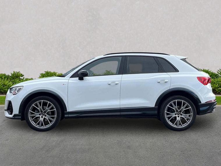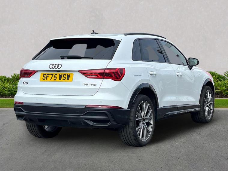 Reference: SF75WSW . Glasgow Audi are offering a rare opportunity to own this AUDI Q3 Q3 Black Edition 35 TFSI 150 PS S tronic. This vehicle was registered by us for use by one of our colleagues & has been maintained by us in accordance with the manufacturers recommendations. The vehicle is now being readied for sale & as such represents a strong saving against the price of purchasing this as a brand new vehicle. In preparation for sale this vehicle has had all of it's software updates carried out and has passed our internal pre sale checks. - In accordance with the manufacturers requirement, this vehicle is sanctioned for handover from this month. ===================================================================== A compact SUV with space, comfort, and versatility. The Q3 features upscale materials, MMI infotainment, and a strong road presence. Ideal for small families or those upgrading from a hatchback to a premium crossover. This car is supplied with the following optional upgrades :- TECHNOLOGY PACK which adds smart driving aids and convenience tech. . Standard features on this car include Integrated SATELLITE NAVIGATION with real-time routing and traffic updates. SATELLITE NAVIGATION via APPLE CAR PLAY which allows integration using apps like Maps to help manage your journeys. FULL LEATHER delivering a luxury feel in the cabin. CLIMATE CONTROL which automatically regulates cabin temperature for you. VIRTUAL COCKPIT so that you can customise the digital dashboard with maps, gauges, and media. CRUISE CONTROL to maintain a steady speed without constant pedal input. FRONT AND REAR PARKING SENSORS to help manoeuvring in tight spaces whether you are going forward or reversing. REAR CAMERA for easier and safer reversing. HEATED FRONT SEATS to keep your comfortable in cold weather conditions. Plus lots more. ===================================================================== 150 MULTI POINT CHECK | AUDI PARTS |FACTORY TRAINED TECHNICIANS 12 MONTH MANUFACTURER BACKED WARRANTY & ROADSIDE ASSISTANCE. AUDI CONNECTED|HISTORY CHECKS ===================================================================== Lookers are an authorised representative for a wide range of award-winning car manufacturers, providing you with an unparalleled choice of quality and approved used cars, currently for sale. Our exceptional standards ensure you receive the best possible service when you purchase with us, ensuring peace of mind when you drive away with your new vehicle. With us representing so many great brands we are an excellent position to offer you a fair and transparent price for your part exchange. At Lookers, we care about our customers and want to ensure that the price you see is the price you pay. Our Transparent pricing policy simply means, honest, straightforward pricing offering our vehicles at the best price possible; ensuring no haggling or hassle for you.