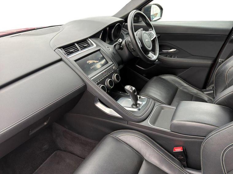 The E-PACE P200 R-Dynamic combines stylish design with compact SUV versatility. Under the bonnet sits a 2.0-litre four-cylinder petrol engine producing 200 PS, paired with a nine-speed automatic transmission and AWD as standard, delivering slick performance and assured road-holding. Across its exterior you’ll find the R-Dynamic Black edition’s hallmark styling: gloss-black mirror caps, black grille surround, satin-grey 19? alloys, red brake calipers and privacy glass. Inside, the cabin benefits from premium materials, the latest Pivi Pro infotainment with an 11.4? curved touchscreen, and a panoramic roof to enhance light and space. The car brings Jaguar’s Premium Transverse Architecture for improved comfort and dynamics, making it agile in city traffic yet composed on longer journeys. Practicality is respectable for its class, and the elevated driving position adds to its SUV appeal. For those seeking a compact, premium SUV with distinctive styling and capable performance, the E-PACE P200 R-Dynamic Black presents a compelling option.
