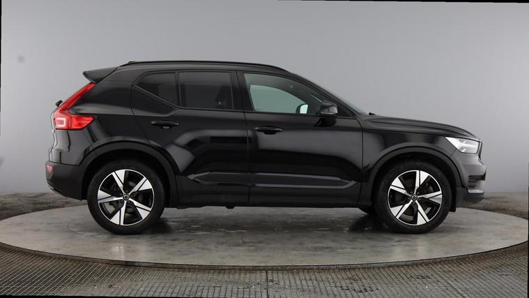 Colour Adapted Rear View Mirror Covers Sport Chassis Nubuck textile/Nappa Leather upholstery 7m 3.5 kW Type2 / Mode 3 Charge Cable (included as standard) 7-speed Dual Clutch transmission Sport Pedals Tailored leather gear shift with contrasting seams 2-Zone Electronic Climate Control Passenger Airbag Cut Off Switch Dual Stage Driver and Passenger Airbags Driver Knee Airbag Charcoal headlining Charcoal interior inserts Road Sign Information Driver Alert Control with Lane Keeping Aid R-Design grille with high-gloss black insert LED headlights 12-inch driver display Cruise Control Adjustable Speed Limiter My Volvo DAB (Digital Audio Broadcasting) Radio High Performance Sound Autofolding Heated Power Door Mirrors Automatic door locking Small storage. front Double locking Dark Tinted Rear Windows Anti-theft Alarm including Immobiliser. Volume Sensor and Level Sensor Power Operated Tailgate "CleanZone" Air Quality System and Pollen Filter GloveBox Bag Hook Voice Activated Control for Key Functions Digital owners manual Cutting Edge aluminium decor Adjustable passenger seat Five seats Mechanical release second seat row Manual cushion extensions. driver and passenger 4-Way Lumbar Support Sport Textile Mats. Charcoal Load Protection Net Rear centre armrest Illuminated Vanity Mirrors Rear Footwell and Side Step Illumination 12v Socket - Cargo Area Auto-dimmed rear-view mirror Glossy black tunnel console Sport Chassis Braking system Indirect Tyre Pressure Monitoring System (iTPMS) Oncoming Lane Mitigation Hill Descent Control EBL. Flashing Brake Light and Hazard Warning Tailored sport steering wheel. Charcoal Adaptive power steering 19" 5-Spoke (Diamond Cut/High Gloss Black) Temporary mobility kit Locking Wheel Nuts Hidden tail pipes Glossy Black Window Trim Roof Rails - Integrated. High Gloss Black Recharge aluminium front tread plates Recharge embossed logo on C/D-pillar Tempered side windows Rain Sensor - Automatic Windscreen Wiper Activation Sensus Navigation Rear Park Assist Ticket Holder Electric cabin heater and cooler Plastic protection cap 7m 3.5 kW Type2 / Mode 3 Charge Cable (included as standard) Front seats 9-inch centre display 7m Charge Cable with 3 Pin Plug Whiplash injury protection system IC (Inflatable Curtains) - Full Length Side impact protection ISOFIX Attachment (Outer Rear Seats) Steering Wheel Remote Infotainment Control Humidity sensor Bluetooth® Handsfree System
