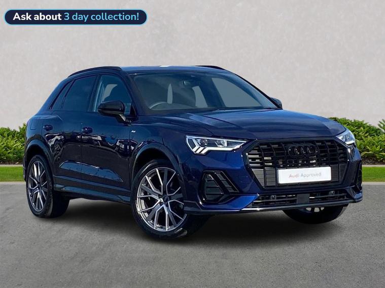Reference: RO75CWV. Farnborough Audi are offering a rare opportunity to own this AUDI Q3 35 TFSi BLACK EDITION 5DR S-TRONIC [TECH PACK]. This vehicle was registered by us for use by one of our colleagues & has been maintained by us in accordance with the manufacturers recommendations. The vehicle is now being readied for sale & as such represents a strong saving against the price of purchasing this as a brand new vehicle. In preparation for sale this vehicle has had all of it's software updates carried out and has passed our internal pre sale checks. - In accordance with the manufacturers requirement, this vehicle is sanctioned for handover from this month. ===================================================================== Audi’s bestselling SUV, the Q5 offers balanced performance, a premium cabin, and great practicality. it’s an excellent choice for families and professionals alike. SMART on the Outside, CLEVER on the inside! This car is supplied with the following optional upgrades :- TECHNOLOGY PACK which adds smart driving aids and convenience tech. . Standard features on this car include Integrated SATELLITE NAVIGATION with real-time routing and traffic updates. SATELLITE NAVIGATION via APPLE CAR PLAY which allows integration using apps like Maps to help manage your journeys. FULL LEATHER delivering a luxury feel in the cabin. CLIMATE CONTROL which automatically regulates cabin temperature for you. VIRTUAL COCKPIT so that you can customise the digital dashboard with maps, gauges, and media. CRUISE CONTROL to maintain a steady speed without constant pedal input. REAR PARKING SENSORS to warn of objects behind while reversing. REAR CAMERA for easier and safer reversing. HEATED FRONT SEATS to keep your comfortable in cold weather conditions. Plus lots more. ===================================================================== 150 MULTI POINT CHECK | AUDI PARTS |FACTORY TRAINED TECHNICIANS 12 MONTH MANUFACTURER BACKED WARRANTY & ROADSIDE ASSISTANCE. AUDI CONNECTED|HISTORY CHECKS ===================================================================== Lookers are an authorised representative for a wide range of award-winning car manufacturers, providing you with an unparalleled choice of quality and approved used cars, currently for sale. Our exceptional standards ensure you receive the best possible service when you purchase with us, ensuring peace of mind when you drive away with your new vehicle. With us representing so many great brands we are an excellent position to offer you a fair and transparent price for your part exchange. At Lookers, we care about our customers and want to ensure that the price you see is the price you pay. Our Transparent pricing policy simply means, honest, straightforward pricing offering our vehicles at the best price possible; ensuring no haggling or hassle for you.