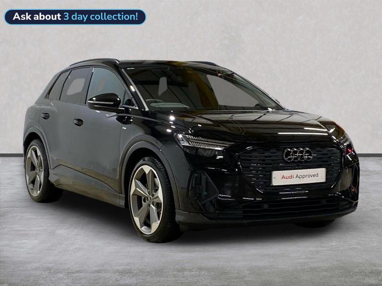 Reference: RF75ORL. Guildford Audi are offering a rare opportunity to own this AUDI Q4 45 Quattro Black Edition. This vehicle was registered by us as a demonstrator & has been maintained in accordance with the manufacturers recommendations. The vehicle is now being readied for sale & as such represents a strong saving against the price of purchasing this as a brand new vehicle. As a demonstrator the mileage may be different to that advertised. Please check with us to confirm the current mileage. - In accordance with the manufacturers requirement, this vehicle is sanctioned for handover from MAY. ===================================================================== Audi’s compact electric SUV, the Q4 e-tron delivers modern styling, a refined ride, and all the benefits of EV driving. Spacious and tech-focused, it’s perfect for those making the jump to premium electric mobility. This car is supplied with the following optional upgrades :- TECHNOLOGY PACK which adds smart driving aids and convenience tech. BLACK STYLING PACK for a more aggressive and sporty look. . Standard features on this car include Integrated SATELLITE NAVIGATION with real-time routing and traffic updates. FULL LEATHER delivering a luxury feel in the cabin. CLIMATE CONTROL which automatically regulates cabin temperature for you. VIRTUAL COCKPIT so that you can customise the digital dashboard with maps, gauges, and media. CRUISE CONTROL to maintain a steady speed without constant pedal input. REAR CAMERA for easier and safer reversing. HEATED FRONT SEATS to keep your comfortable in cold weather conditions. Plus lots more. - As a VAT Qualifying vehicle it has the additional benefit to VAT Registered individuals or companies buying the car solely for business use, as they could reclaim the 20% VAT from the purchase price. ===================================================================== 150 MULTI POINT CHECK | AUDI PARTS |FACTORY TRAINED TECHNICIANS 12 MONTH MANUFACTURER BACKED WARRANTY & ROADSIDE ASSISTANCE. AUDI CONNECTED|HISTORY CHECKS ===================================================================== Lookers are an authorised representative for a wide range of award-winning car manufacturers, providing you with an unparalleled choice of quality and approved used cars, currently for sale. Our exceptional standards ensure you receive the best possible service when you purchase with us, ensuring peace of mind when you drive away with your new vehicle. With us representing so many great brands we are an excellent position to offer you a fair and transparent price for your part exchange. - Our demonstrators & courtesy vehicles by nature are made available to our customers to experience the product or for help getting around whilst with us for aftersales work and as such could have had multiple users. At Lookers, we care about our customers and want to ensure that the price you see is the price you pay.