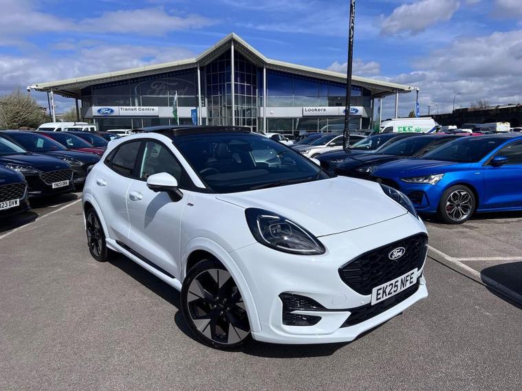 ***FORD DIRECT PREMIUM APPROVED***Optional extras from new include PANORAMIC OPENING SUNROOF, 19" UPGRADED ALLOYS, DRIVER ASSISTANCE PACK (INCLUDES ADAPTIVE CRUISE CONTROL with EVASIVE STEERING, BLIND SPOT TECHNOLOGY (BLIS)) WITH CROSS TRAFFIC ALERT, 360 CAMERA WITH FRONT & REAR SENSORS), WINTER PACK (HEATED FRONT SEATS & HEATED STEERING WHEEL) & MINI SPARE WHEEL. Other standard features include FULL ST-LINE BODY KIT WITH TINTED GLASS & REAR SPOILER, SATELLITE NAVIGATION with SYNC 4 12" LANDSCAPE TOUCH SCREEN DISPLAY, WIRELESS CHARGING PAD, COMPATIBLE WITH APPLE CAR PLAY + ANDROID AUTO, LANE KEEPING ASSIST, PRE-COLLISION ASSIST + AUTONOMOUS BRAKING, PEDESTRIAN & CYCLIST DETECTION, BANG & OLUFFSEN B&O SOUND SYSTEM, CLIMATE CONTROLLED AIR CONDITIONING, 12.8" DIGITAL COCKPIT, SELECTABLE DRIVING MODES, FORD EXTENDED MEGA BOX (GREAT FOR HIDDEN STORAGE), KEY-FREE POWER START, POWER FOLDING DOOR MIRRORS, 4x ELECTRIC WINDOWS, HALF LEATHER INTERIOR TRIM to really finish off that quality look & feel, QUICK CLEAR HEATED FRONT WINDSCREEN FOR THOSE FROSTY MORNINGS, ISOFIX SEATS & SO MUCH MORE. We're absolutely delighted to offer this stunning new shape Puma ST Line X as part of our Approved Used stock. This top of the range Puma with only 6002 miles is presented in stunning FROZEN WHITE colour with contrasting sports half leather trim. We believe this excellent value Puma is a pure joy to drive with effective HYBRID TECHNOLOGY delivering smooth & efficient power on every surface. This car needs to be viewed and driven to be truly appreciated so why wait, call now to enquire***2 YEARS FREE RAC EUROPEAN ROADSIDE ASSISTANCE & 2 YEARS UNLIMITED MILEAGE WARRANTY WITH THIS CAR***Lookers Ford Sheffield (S4 7UQ) ARE A FORD APPROVED RETAILER. WE OFFER COMPETITIVE FINANCE RATES AND ALL OUR VEHICLES ARE THOROUGHLY INSPECTED & HPI CLEAR. AS PART OF THE LOOKERS LIMITED GROUP, WE HAVE ACCESS TO OVER 40 DIFFERENT BRANDS, SO WE ARE BEST PLACED TO FIND THE CORRECT VALUE FOR YOUR PART EXCHANGE. BUY WITH CONFIDENCE FROM A COMPANY ESTABLISHED IN 1908. LOOKERS A GOOD DEAL, BETTER****PLEASE CALL NOW FOR MORE INFORMATION & A PERSONALISED VIDEO SHOWING YOU YOUR NEXT CAR t: 01143389217 Unless otherwise stated, vehicles may have previously been used for business or hire purposes and so may have had multiple users. Where we hold documents relating to vehicle history, these are available for inspection on request.
