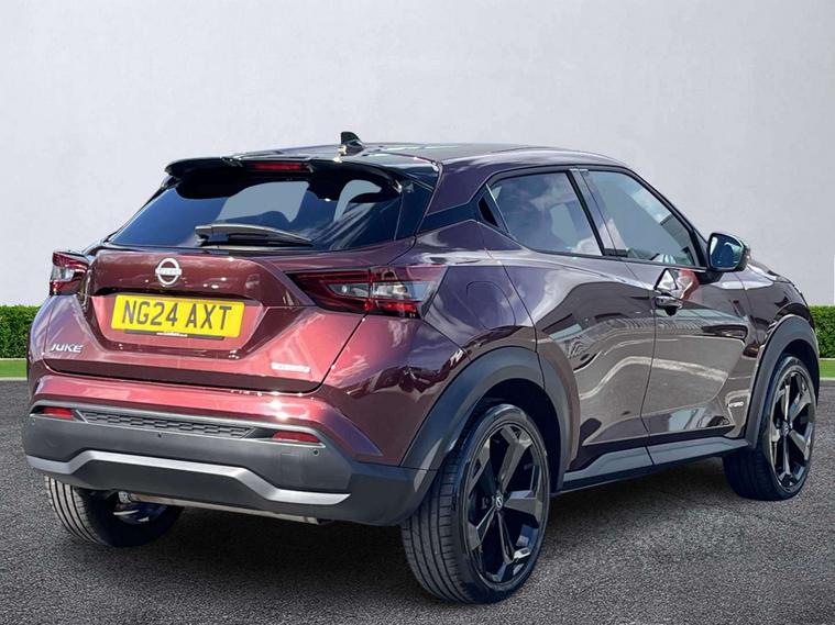 Experience premium hybrid efficiency, advanced technology and eye-catching style with this 2024 24-plate Nissan JUKE 1.6 Hybrid Tekna Auto, finished in the rich and sophisticated Burgundy. With one owner from new and a full service history, this high-specification example offers excellent peace of mind and outstanding everyday usability. Powered by Nissan’s advanced 1.6 Hybrid powertrain, the JUKE delivers smooth, responsive performance while optimising fuel efficiency by seamlessly switching between electric and petrol power. The automatic transmission ensures an effortless and refined driving experience, making it perfectly suited for both city driving and longer journeys. As the premium Tekna model, this JUKE comes equipped with an impressive array of features designed to enhance comfort, safety and convenience. Highlights include heated front seats, a Bose Personal sound system, intelligent Around-View Monitor (360° camera), adaptive cruise control, front and rear parking sensors, keyless entry, a digital driver display, and a touchscreen infotainment system with navigation, Apple CarPlay and Android Auto. The interior feels modern, well finished and comfortable, delivering a true premium driving environment. Finished in Burgundy, this JUKE stands out with its bold colour and distinctive crossover styling, giving it a confident and refined road presence. Fully inspected and prepared by our approved technicians at Lookers Nissan Sunderland, it is presented in excellent condition and ready to drive away today. If you’re looking for a stylish, efficient and well-equipped hybrid crossover with strong ownership credentials and premium features, this Nissan JUKE Tekna Hybrid is an outstanding choice. Contact Lookers Nissan Sunderland to arrange your viewing or test drive.