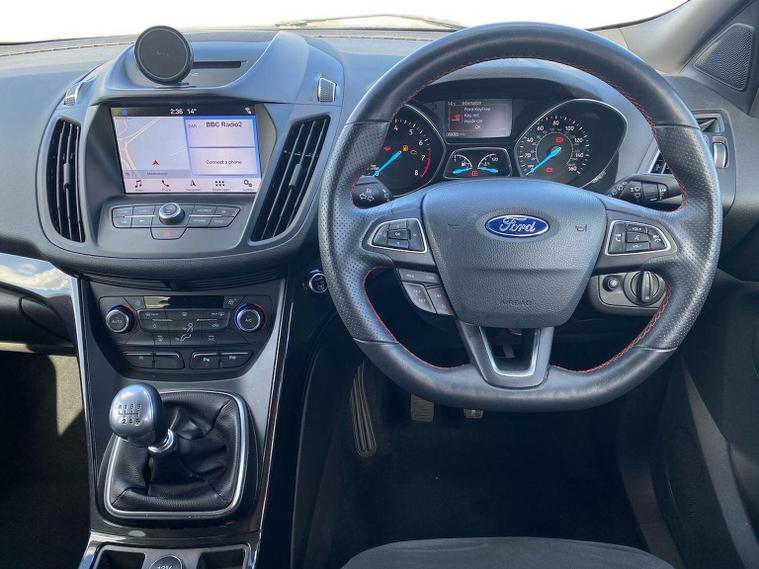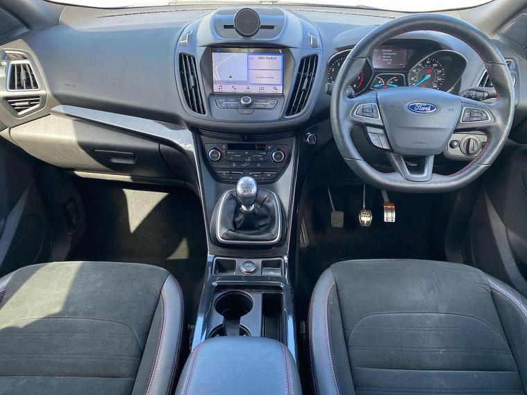 Ford Kuga 1.5 EcoBoost ST-Line 5dr The Perfect Blend of Family Practicality and Sporty Performance. Looking for an SUV that doesn't feel like a "sensible" compromise? This Ford Kuga ST-Line delivers a sharp, engaging drive paired with the bold, aggressive styling that Ford’s ST-Line range is famous for. With 65, 000 miles, this vehicle has been driven and enjoyed, and it’s now ready to provide its next owner with years of reliable service. Key Specifications Model: 1.5 EcoBoost ST-Line (2WD) Mileage: 65, 000 Miles Transmission: Manual Fuel: Petrol Body Style: 5-Door SUV ST-Line Styling & Features The ST-Line trim is designed for those who want their SUV to stand out. It swaps the standard chrome for a darker, more athletic aesthetic: Sporty Exterior: Full ST-Line body styling kit, including unique front and rear bumpers, side skirts, and a larger rear spoiler. Curb Appeal: Finished with striking dark-alloy wheels and black roof rails for a premium, stealthy look. Enhanced Handling: Equipped with Sports Suspension, giving you a flatter, more confident feel through the corners compared to standard SUVs. Driver-Focused Interior: Deep-bolstered sports seats with signature red stitching, a flat-bottomed steering wheel, and dark headlining. Technology & Comfort Inside, the Kuga is packed with tech to make every journey easier: Ford SYNC 3: High-resolution touchscreen with Satellite Navigation. Smartphone Integration: Full Apple CarPlay and Android Auto compatibility. Convenience: Front and rear parking sensors, dual-zone climate control, and cruise control for effortless motorway cruising. Keyless Entry & Start: Keep your keys in your pocket and go. Power & Versatility The 1.5 EcoBoost engine is the sweet spot of the range—offering plenty of torque for overtaking and towing, while remaining efficient on longer runs. The 2WD setup ensures better fuel economy and lower maintenance costs than its 4WD counterparts. The Verdict: If you need a spacious family car with a massive boot and plenty of legroom, but you still want a car that looks fantastic on the driveway and feels great behind the wheel, this Kuga is the answer.