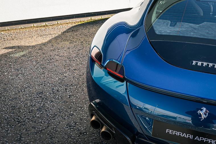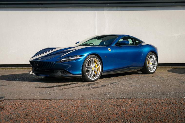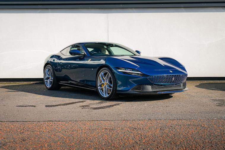 This 2023 Ferrari Roma has been meticulously configured in a contemporary colour combination of Blu Abu Dhabi with Sabbia interior. As it is Ferrari Approved it will be supplied with a 24 month Ferrari warranty for your peace of mind. This striking vehicle is powered by a potent 3.9L Twin Turbo V8 producing 620 HP. Its sophisticated design is enhanced by exterior carbon fibre elements including a Rear Diffuser in Carbon Fibre, underdoor cover and front spoiler along with Sport Exhaust Pipes. The interior boasts luxurious Daytona Style Seats with black piping and contrasting stitching. Enjoy a high power JBL Professional sound system whilst covering many enjoyable miles. The very capable Roma model can accelerate from 0 to 62mph in a remarkable 3.4 seconds. This impressive acceleration demonstrates the vehicle's superior engineering and dynamic capabilities when compared to other cars in its class. The combination of its powerful engine, advanced features, and the renowned Ferrari driving experience makes this Roma a truly special proposition.