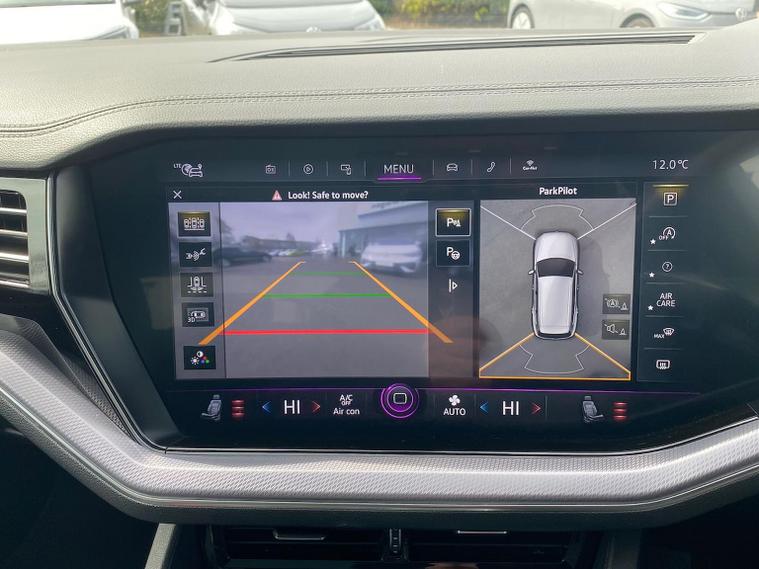OPTIONAL AMBIENT LIGHT PACK AND DYNAUDIO!! The new Touareg BLACK EDITION is a much needed overhaul of the previous model, offering a completely new high-tech and modern interior and ultra sharp head turning styling on the body! With rear parking camera, sat nav, App-Connect, full leather interior, heated front seats, Bluetooth, adaptive cruise control, self park assist, front and rear and side sensors, power tailgate, wireless phone charging, tinted rear windows, 20” alloy wheels, all new IQ headlight units, auto lights and wipers, folding wing mirrors and so much more as standard! Supplied under the VW Approved program, this car has been 142 point mechanically inspected and comes with 12 months Volkswagen warranty and 12 months roadside assistance! Supplied under Lookers Transparent Pricing Policy - at Lookers, the price you see is the price you pay! PCP & HP available. National delivery negotiable.