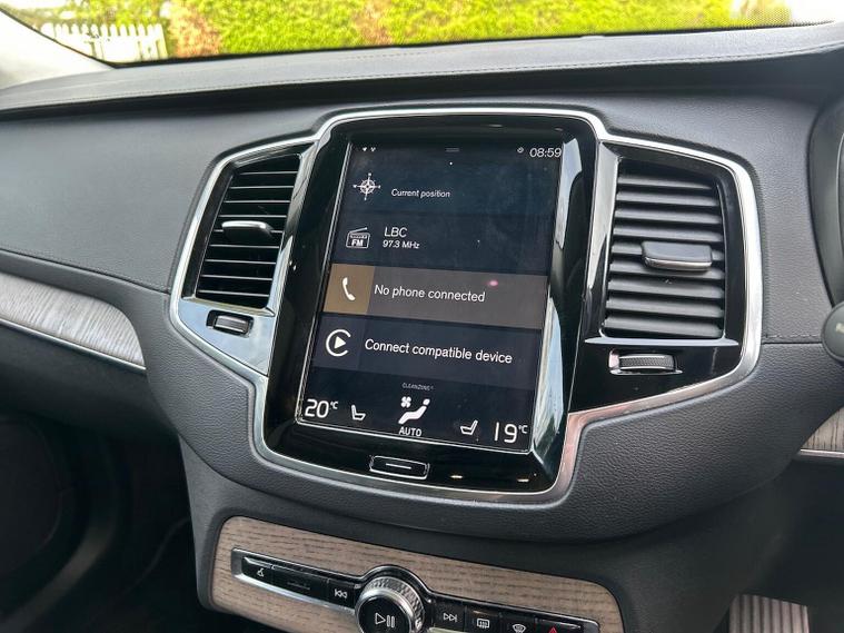 Lounge Power Glass Tilt and Slide Panoramic Sunroof with Sun Curtain Parking Camera 360° Surround View Miscellaneous Blond headlining Power Child Locks Grey Ash Inlays Dark Tinted Windows - Rear Side Doors and Cargo Area Maroon Brown Perforated Nappa in Charcoal interior (RC30) Smartphone Integration (includes Apple Car Play and Android Auto) Ventilated Front Seats Power side bolsters Comfort Front Seats Drive Mode Settings 8-speed Automatic transmission Pedals Orrefors® Crystal Gear Lever (automatic only) PTC air heater Third row air conditioning 4-Zone Electronic Climate Control Passenger Airbag Cut Off Switch Dual Stage Driver and Passenger Airbags Driver Knee Airbag Power Glass Tilt and Slide Panoramic Sunroof with Sun Curtain Road Sign Information Display Driver Alert Control with Lane Keeping Aid Inscription front grille in Matte silver with chrome frame Automatic LED Headlights with Active High Beam incorporating Day Running Lights Headlight Cleaning System 12.3 Active TFT Crystal Driver's Information Display Pilot Assist (up to 80mph) Adaptive Cruise Control with Distance Alert & Queue Assist Adjustable Speed Limiter Volvo On Call with App DAB (Digital Audio Broadcasting) Radio Sensus Connect with High Performance Sound Power retractable door mirrors Power operated passenger seat with memory function Automatic door locking Colour adapted rear view mirror covers Double locking Private Locking Dark Tinted Windows - Rear Side Doors and Cargo Area Anti-theft Alarm including Immobiliser. Volume Sensor and Level Sensor Power Child Locks Keyless Drive (includes Keyless Entry and Keyless Start) CleanZone (AQS with prevent at unlocking). Multifilter 3 Voice Activated Control for Key Functions Textile floor mats. third-row Tailored Instrument Panel and Door Tops with Contrast Stitching Power Driver's Seat with Memory for Seat Power Passenger Seat Heated Front Seats Heated Rear Seats - Outer Positions Power folding outer rear head restraints. second row Seven individual seats Manually foldable second seat row 4-Way Lumbar Support Luxury Floor Mats Load Protection Net Flexible Load Floor with Grocery Bag Holder Centre armrest with cupholders Illuminated Vanity Mirrors Rear Footwell and Side Step Illumination 12v Socket - Cargo Area First Aid Kit Load cover. semi-automatic Integrated Sun Curtain - Rear Doors Autodimming Inner & Exterior Mirrors Hidden storage compartment Seat cushion extensions. driver seat Touring Chassis Hill Start Assist Oncoming Lane Mitigation Rear Collision Warning and Mitigation Support Hill Descent Control Slippery road alert EBL. Flashing Brake Light and Hazard Warning Heated Steering Wheel 3 Spoke Leather Steering Wheel Adjustable Steering Force 20" 10 Spoke (Diamond Cut/Light Grey) Tyre Sealant Kit w