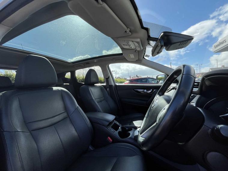 Enjoy premium comfort, strong diesel performance and high specification with this 2017 17-plate Nissan QASHQAI 1.6 dCi Tekna XTRONIC, finished in the smart and timeless Blade Silver. Supplied with a full service history, this well-maintained example offers excellent peace of mind and outstanding value in one of the UK’s most popular family SUVs. Powered by the efficient yet punchy 1.6 dCi diesel engine producing 130PS, this QASHQAI delivers smooth acceleration, impressive fuel economy and relaxed long-distance cruising. The XTRONIC automatic transmission provides seamless power delivery, making it ideal for both urban driving and motorway journeys, while the comfortable suspension ensures an excellent ride quality. As the range-topping Tekna model, this QASHQAI comes exceptionally well equipped. Features include full leather upholstery, heated front seats, a heated steering wheel, ProPILOT driver assistance, adaptive LED headlights, front and rear parking sensors, the Intelligent Around-View Monitor (360° camera) and a touchscreen infotainment system with satellite navigation, Apple CarPlay and Android Auto. The standout panoramic glass sunroof with one-touch electric shade floods the cabin with natural light, creating a bright, airy and premium interior environment. Inside, the QASHQAI offers generous space for passengers, excellent visibility and a practical, versatile boot—making it perfectly suited to family life, commuting or longer journeys. Finished in Blade Silver, this QASHQAI has a clean, modern road presence that perfectly complements its stylish SUV design. Fully inspected and prepared by our approved technicians at Lookers Nissan Sunderland, it is presented in excellent condition and ready to drive away today. If you’re looking for a well-equipped, comfortable and economical automatic SUV with premium features and a strong history, this Nissan QASHQAI Tekna is an excellent choice. Contact Lookers Nissan to arrange a test drive today!