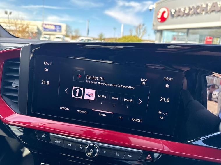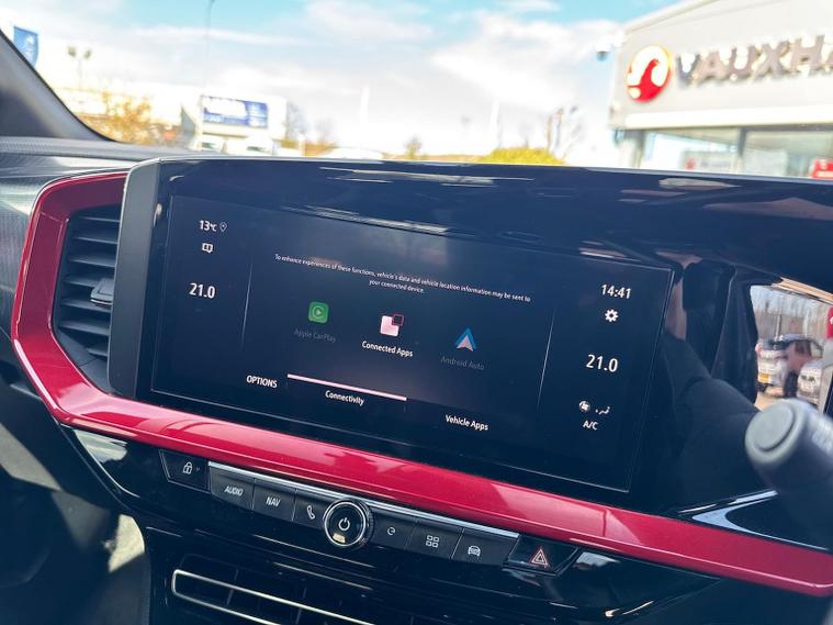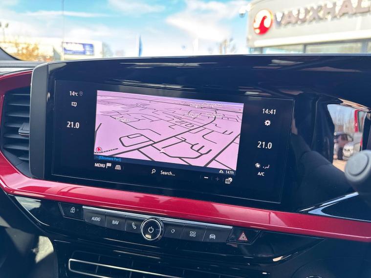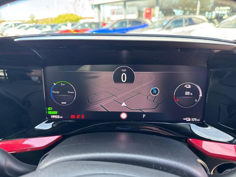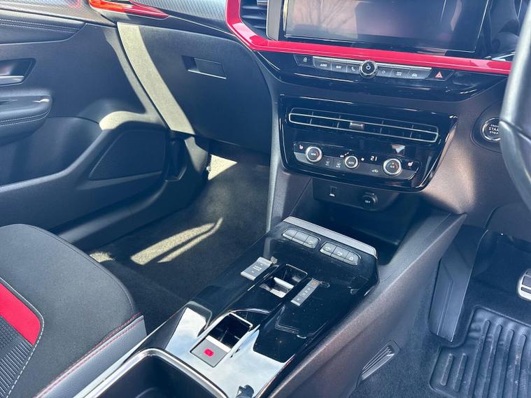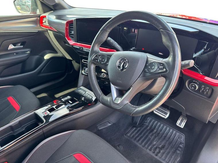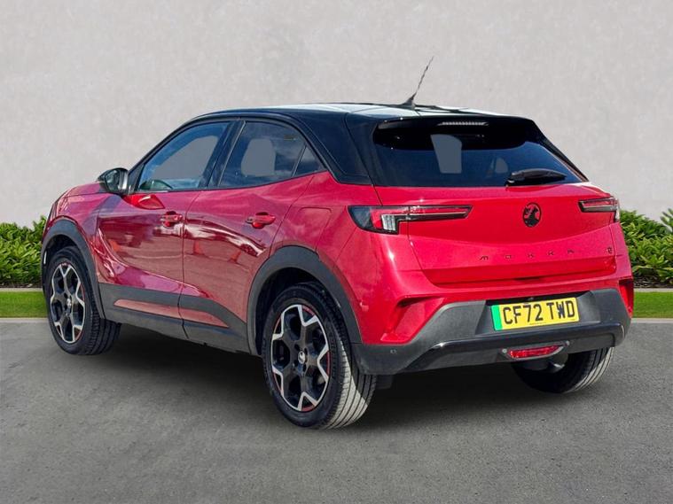 The 2022 Vauxhall Mokka-e (Electric) GS Line is a well-equipped mid-tier compact SUV known for its sporty styling and extensive standard technology. Performance & Charging Powertrain: 100kW electric motor producing 134 bhp and 260 Nm of torque. Range: A WLTP-certified range of up to 209 miles. Acceleration: 0–62 mph in approximately 9.2 seconds with a top speed of 93 mph. Charging: Rapid (100kW DC): 0% to 80% in about 30 minutes. Home (7kW Wallbox): 0% to 100% in approximately 7 hours 30 minutes. On-board Charger: Standard 11kW AC capability. Interior & Infotainment Vauxhall Pure Panel: A fully digital cockpit featuring a 10-inch colour touchscreen angled toward the driver and a 12-inch digital instrument cluster. Connectivity: Multimedia Navi Pro system with satellite navigation, Apple CarPlay, Android Auto, and Bluetooth. Comfort: Electronic climate control, heated front seats, and a heated flat-bottom leather steering wheel. USB Ports: One USB connection in the front and two rear USB sockets for passengers. Exterior & Styling GS Line Signature: Features a black roof, dark-tinted rear windows, and 18-inch bi-colour alloy wheels often accented with red. Lighting: Full LED headlights, LED daytime running lights, LED tail lights, and LED front fog lights. Vizor Design: Includes the signature Black Griffin logo and black "Vizor" frame. Safety & Driver Assistance PureSense Technology: Panoramic rear-view camera and rear parking sensors. Active Drive Assist Plus: Includes lane positioning assistant (for automatics), lane departure warning with lane keep assist, and driver drowsiness alert. Collision Prevention: Forward collision alert (all-speed) and automatic emergency city braking. Convenience: Cruise control with speed limiter, traffic sign recognition, and rain-sensitive wipers