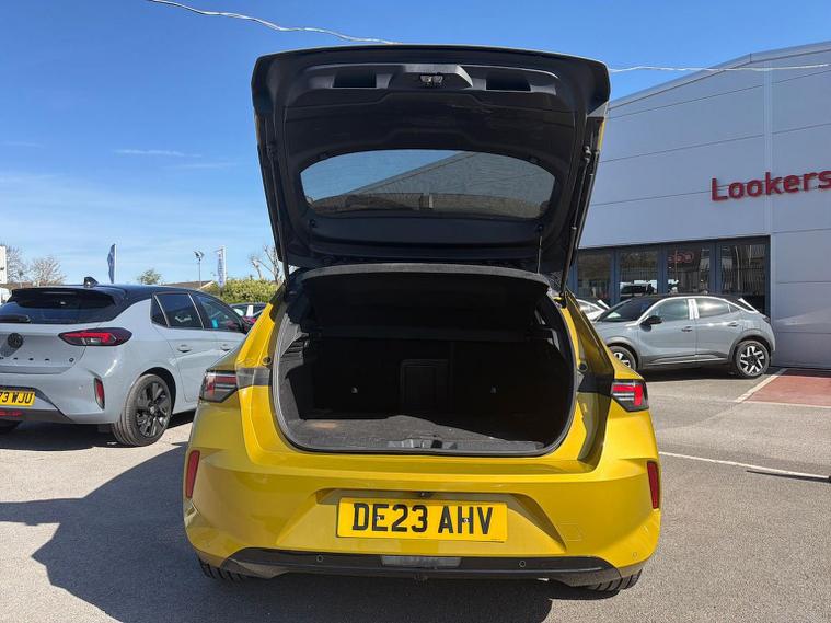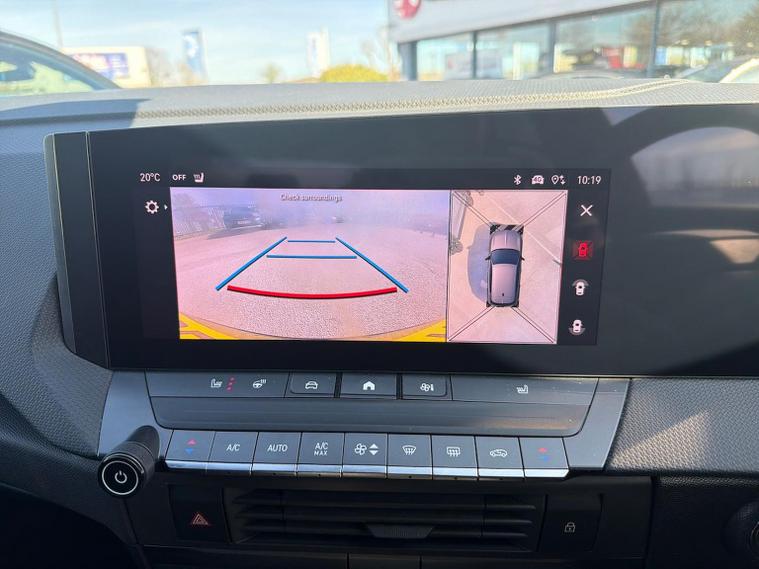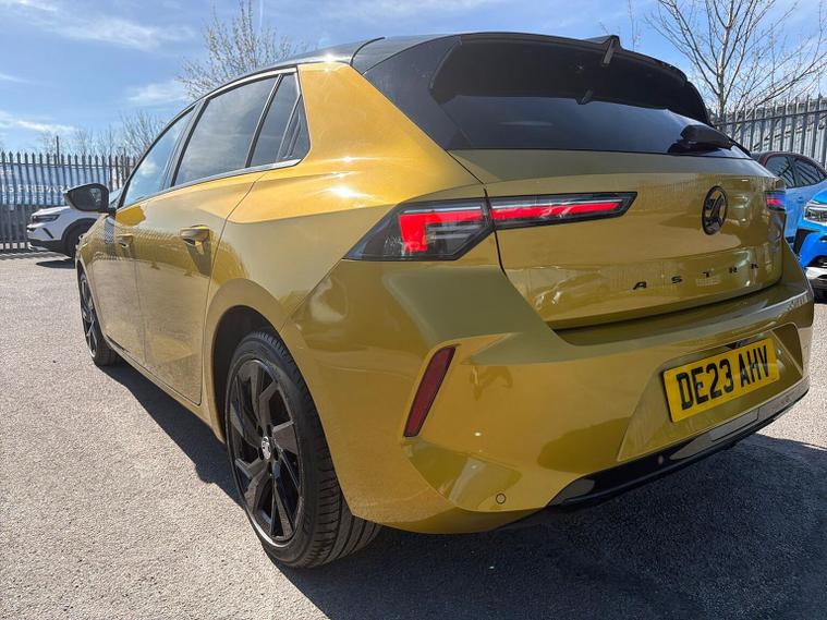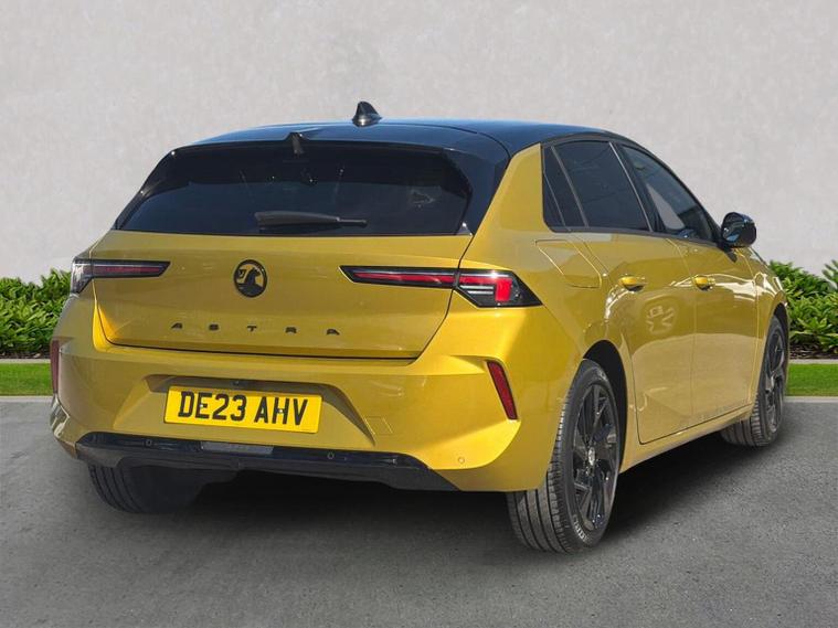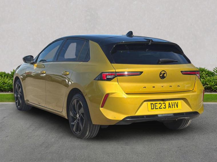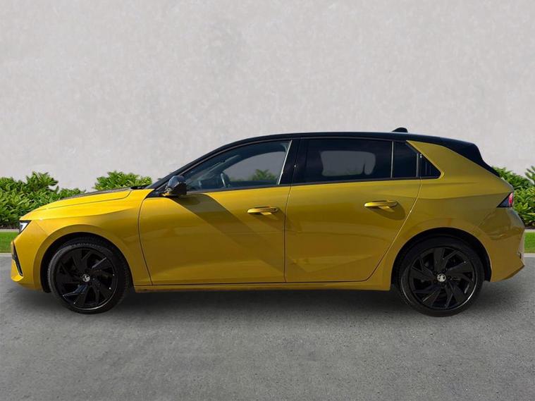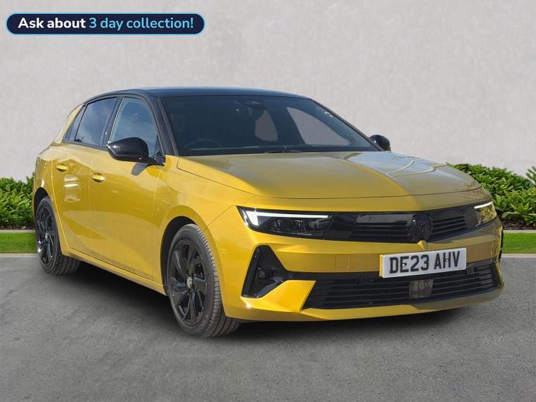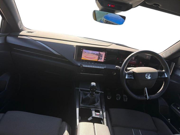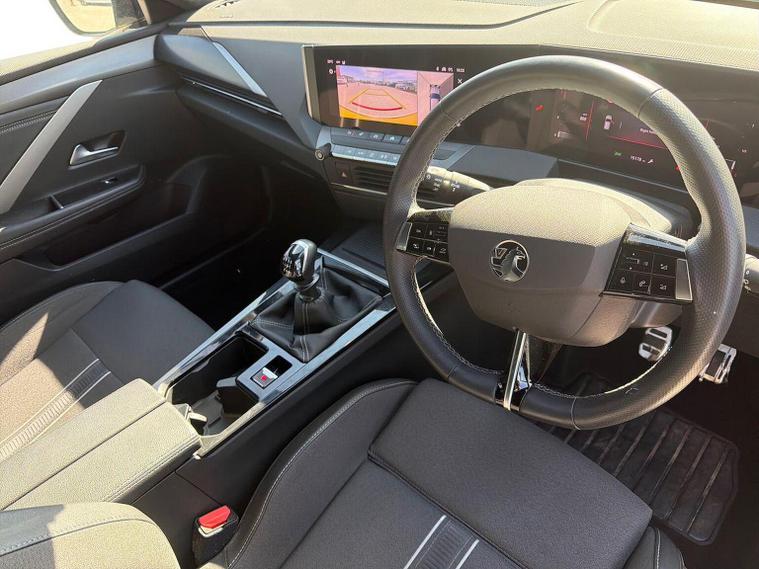 The 2023 Vauxhall Astra 1.2 Turbo GS Hatchback (130 PS) is a sporty, mid-range trim that balances high-tech interior features with distinctive black exterior styling. Key features of this specific manual petrol model include: Interior & Infotainment Pure Panel Pro Navigation: A high-end cockpit featuring a 10-inch colour touchscreen and a matching 10-inch digital instrument cluster. Connectivity: Wireless Apple CarPlay and Android Auto are standard, alongside DAB radio and Bluetooth. Winter Comfort: Includes heated front seats and a heated, perforated flat-bottomed leather steering wheel. AGR Driver's Seat: Features an ergonomic active sports-style driver's seat approved by the Campaign for Healthier Backs (AGR). Atmosphere: Customisable interior ambient lighting with eight different colour options and a black headliner. Exterior Styling Black Accent Pack: Features the signature black Vauxhall Vizor frame, black Griffin logos, a carbon black roof, and black door mirrors. Wheels: Fitted with 17-inch black alloy wheels as standard. Lighting: Full LED headlights, tail lights, and front fog lights, complemented by High Beam Assist. Privacy: Dark-tinted rear windows are included as part of the GS trim. Safety & Driver Assistance Intelli-Vision: A 360-degree panoramic parking camera system accompanied by front and rear parking sensors. Adaptive Cruise Control: Includes intelligent speed adaption. Active Safety: Features automatic emergency braking with pedestrian detection, lane departure warning with lane keep assist, and traffic sign recognition. Convenience: Keyless entry and start, plus rain-sensitive windscreen wipers.