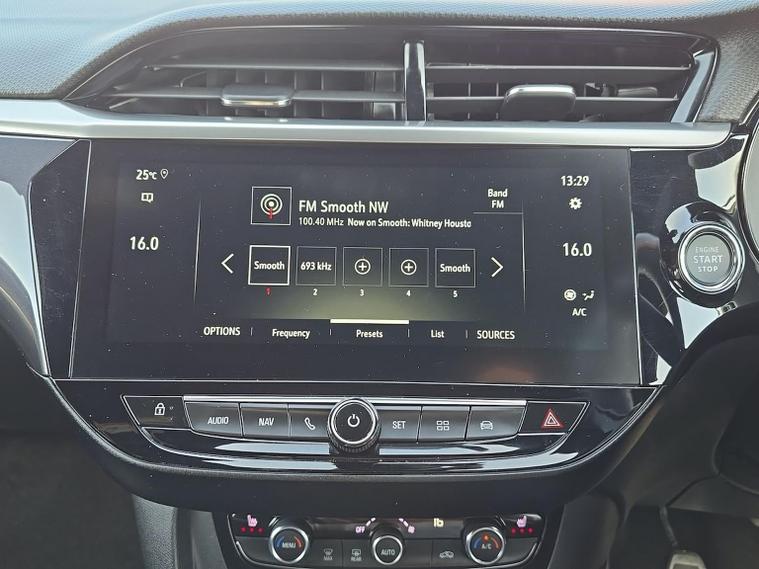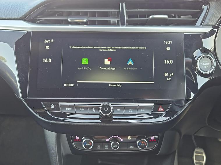 The VAUXHALL CORSA 1.2 Turbo Ultimate Hatchback 5dr Petrol Manual 2023 is the top-tier trim in the Corsa range, combining a 100 PS turbocharged engine with premium technology and comfort enhancements. Core Specifications Engine: 1.2-litre 3-cylinder turbocharged petrol engine producing approximately 100 PS (99 bhp) and 205 Nm of torque. Performance: 0–62 mph in roughly 9.3 seconds with a top speed of 121 mph. Transmission: 6-speed manual gearbox. Efficiency: Combined fuel economy of up to 57.6 mpg (WLTP) with CO2 emissions around 116–117 g/km. Key Features by Category Technology & Connectivity (PureConnect) Infotainment: 10-inch colour touchscreen featuring the Multimedia Navi Pro system. Navigation: Integrated satellite navigation with European coverage and 2D/3D street-level mapping. Smartphone Integration: Wireless Apple CarPlay and Android Auto compatibility. Digital Dash: 7-inch digital colour instrument cluster display. Safety & Driver Assistance (PureSense) Comfort & Interior Seats: Alcantara seat trim with heated front seats and a driver’s seat massage function including lumbar support. Climate: Electronic climate control (ECC) for precise temperature management. Steering Wheel: Heated, flat-bottomed leather-effect steering wheel. Convenience: Keyless entry and start (PEPS) and rain-sensitive windscreen wipers. Exterior Styling Wheels: 17-inch diamond-cut high-gloss black alloy wheels. Accents: Black roof, A-pillars, and high-gloss black B-pillars. Body Styling: Sports front and rear body styling with dark-tinted rear windows.