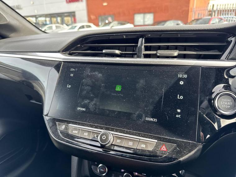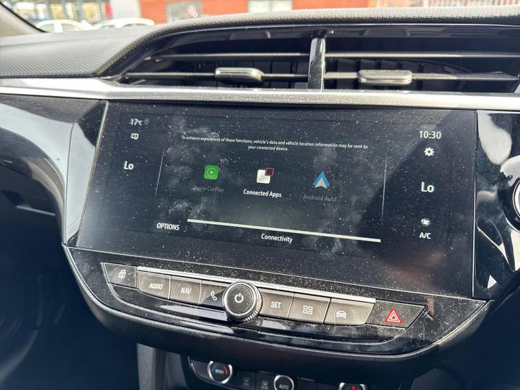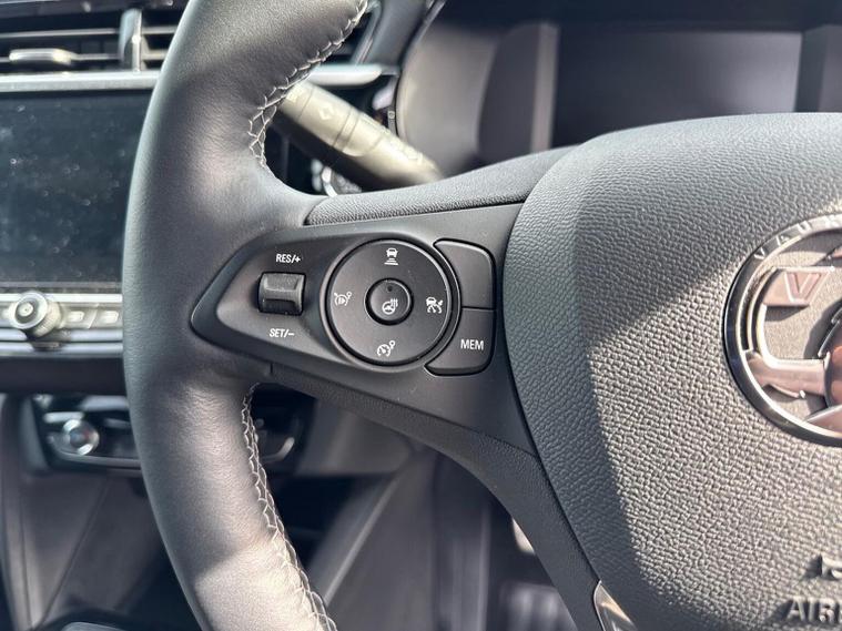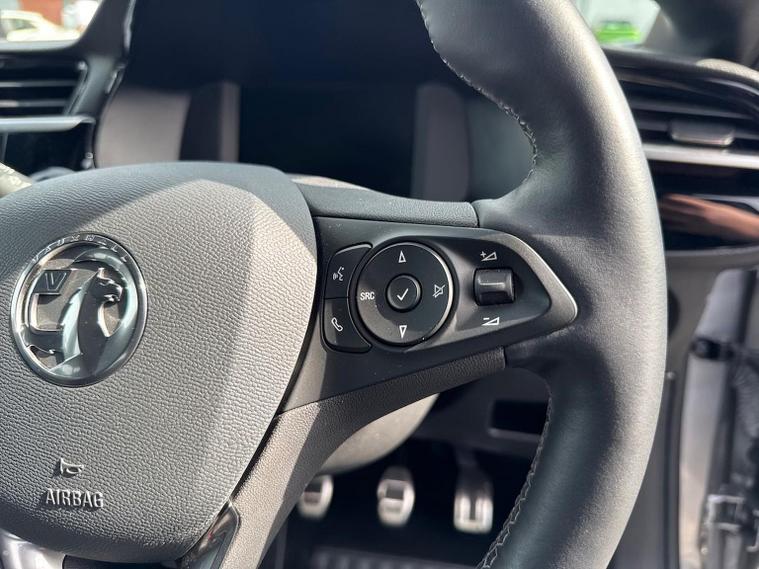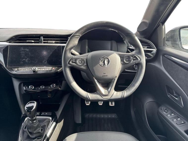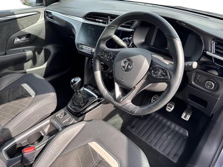 The Vauxhall Corsa 1.2 Turbo Ultimate (2023) is the flagship trim level of the Corsa range, combining a 100PS (99bhp) turbocharged engine with a high level of standard luxury and safety technology. This model received a mid-life "facelift" in 2023, introducing the "Vauxhall Vizor" front-end design. Key Technology & Safety (PureSense) IntelliLux Adaptive LED Matrix Headlights: High-tech headlights that automatically adjust the beam to avoid dazzling other drivers while maintaining maximum illumination. Panoramic Rear-View Camera: Provides a high-resolution, wide-angle view for easier parking. Adaptive Cruise Control: Automatically maintains a set distance from the car in front (manual models typically feature standard adaptive cruise, whereas lane positioning assist is often reserved for automatics). Advanced Safety Suite: Includes enhanced automatic emergency braking, lane departure warning with lane keep assist, side blind spot alert, and traffic sign recognition. Front and Rear Parking Sensors: Standard for simplified urban manoeuvring. Interior & Infotainment (PureConnect) 10-inch Colour Touchscreen: The largest available display, featuring the Multimedia Navi Pro system with built-in European satellite navigation. Wireless Connectivity: Support for wireless Apple CarPlay and Android Auto. Driver Comfort: Features Alcantara seat upholstery, heated front seats, and a driver’s seat with a massage function and lumbar support. Heated Steering Wheel: A leather-effect, flat-bottomed steering wheel with integrated heating for cold weather. Digital Cluster: A 7-inch digital instrument display replaces traditional analogue dials. Keyless Entry & Start: Allows for vehicle access and engine starting without removing the key from your pocket. Exterior & Performance Styling: 17-inch diamond-cut high-gloss black alloy wheels, a black roof, black A-pillars, and dark-tinted rear windows. Engine & Transmission: 1.2-litre 3-cylinder turbo petrol engine producing 100PS (99bhp) and 205Nm of torque, paired with a 6-speed manual gearbox. Performance Stats: Acceleration from 0–62 mph in approximately 9.3 to 9.9 seconds with a top speed of roughly 120–121 mph. Efficiency: Combined fuel economy of approximately 52.3 to 57.6 mpg with CO2 emissions around 116–117 g/km (WLTP)