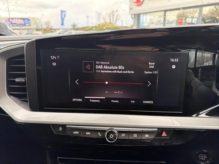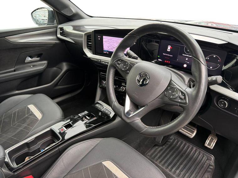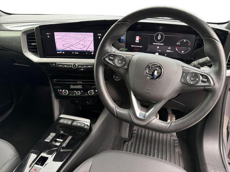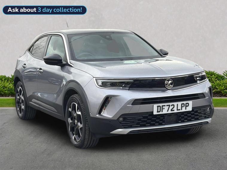 The 2022 Vauxhall Mokka 1.2 Turbo Ultimate (130PS) Petrol Auto is a top-spec, compact 5dr SUV featuring a 10-inch navigation touchscreen, 12-inch digital cluster, heated leather seats, adaptive cruise control, LED matrix headlights, and 18-inch bi-colour alloys. It offers a stylish, tech-focused cabin with auto parking and a reversing camera. Key Features and Specifications: Engine & Performance: 1.2L turbocharged petrol engine producing 130hp, paired with an 8-speed automatic gearbox. Technology & Infotainment: Multimedia Navi Pro system with a 10-inch colour touchscreen, 12-inch digital instrument cluster, Apple CarPlay/Android Auto, and Bluetooth connectivity. Exterior Features: 18-inch bi-colour alloy wheels, IntelliLux LED Matrix headlights, LED tail lights, front fog lights, and rear parking sensors. Interior & Comfort: Heated black leather seats with white stitching, heated steering wheel, electronic climate control, keyless entry/start, and a driver's seat with massage function (on some models). Safety & Driver Assistance: Adaptive cruise control, automatic emergency braking, lane positioning assistant, traffic sign recognition, driver drowsiness alert, and a panoramic rearview camera. Driving Dynamics: Features driving mode selection (Normal, Sport, Eco) to adjust steering and throttle response. This high-trim model is known for its distinctive styling, including a black contrast roof and bonnet, and a high-tech "Pure Panel" dashboard
