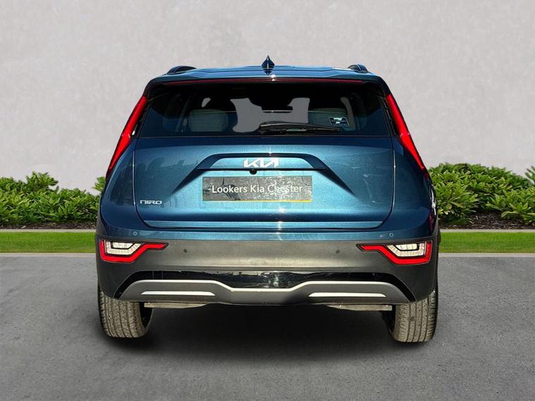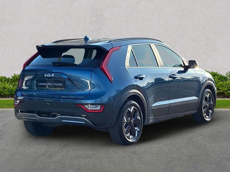 Here at Lookers Kia Chester, We have this lovely Kia E-Niro '2'. This is a full electric vehicle, with a 64kWh battery which is a great size and capable of covering more than 280miles on a single charge. This vehicle comes with a type 2 charging cable which will fit most home chargers, also has a CCS charging port which is used is most electric cars to make on the go charging less difficult. The vehicle has apple car play, android auto, rear privacy glass, reversing camera system, electric folding heated door mirrors, smart cruise control with stop and go functionally making day to day driving pleasurable and providing an extra safety feature to keep you safe on the road. Regenerative braking controlled by paddle shift. Forward collision avoidance assist including pedestrian / cyclist safety. If you have any queries related to charging costs, or home charging points being installed please contact us directly on 01244642178 or pop into the branch. This vehicle has the remainder of it's 7yr Kia Warranty remaining.