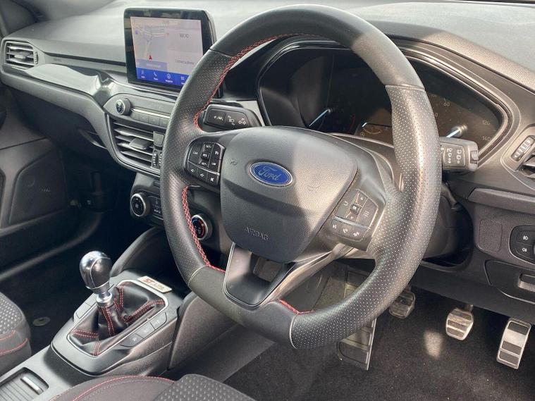 Ford Focus 1.5 EcoBoost 150 ST-Line (5dr) The Driver’s Choice | Low Mileage | 32, 219 Miles If you're looking for a hatchback that prioritizes the driving experience without compromising on family practicality, this Ford Focus ST-Line is the one. Powered by the highly sought-after 1.5L EcoBoost engine, it delivers a punchy 150 PS—offering a significantly more engaging drive than the standard 1.0L models. Performance Meets Presence The ST-Line trim isn't just about looks; it’s engineered to feel sharper on the road. With only 32, 219 miles, this car is in its prime and ready for many more miles of smiles. The Powerhouse: The 1.5L 4-cylinder engine provides effortless acceleration and smooth power delivery, making motorway merging and overtaking a breeze. Sports Tuned: Features ST-Line sports suspension for flatter cornering and a more connected feel to the road. Curb Appeal: Dressed in a full ST-Line body kit, featuring a unique honeycomb grille, large rear spoiler, dual integrated exhaust tips, and striking 17-inch Rock Metallic alloy wheels. A Cockpit Designed Around You Step inside a cabin that blends sporty aesthetics with modern technology: Interior Styling: Sport seats with red contrast stitching, a flat-bottomed leather steering wheel, and aluminum gear knob/pedals. Sync 3 Technology: An 8-inch touchscreen with Satellite Navigation, Apple CarPlay, and Android Auto keeps you connected on the move. Total Comfort: Keyless Start, Quickclear heated windscreen (no more scraping ice in the morning!), and Dual-Zone Climate Control.