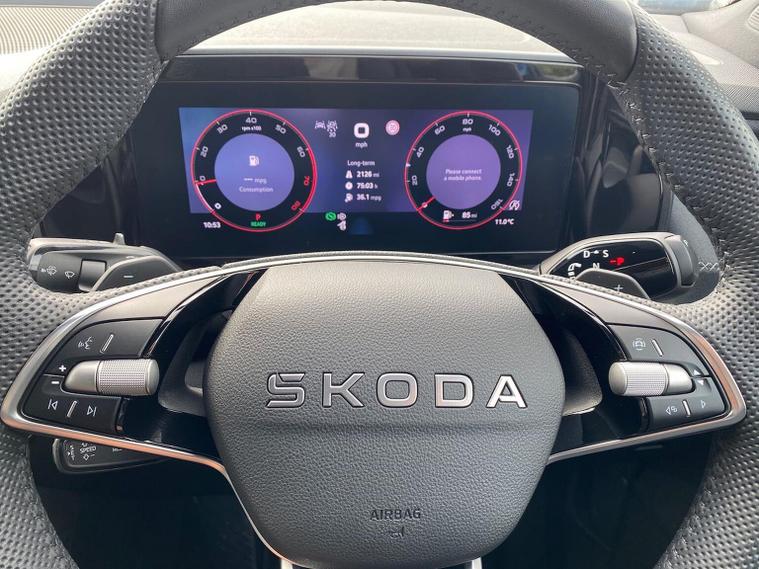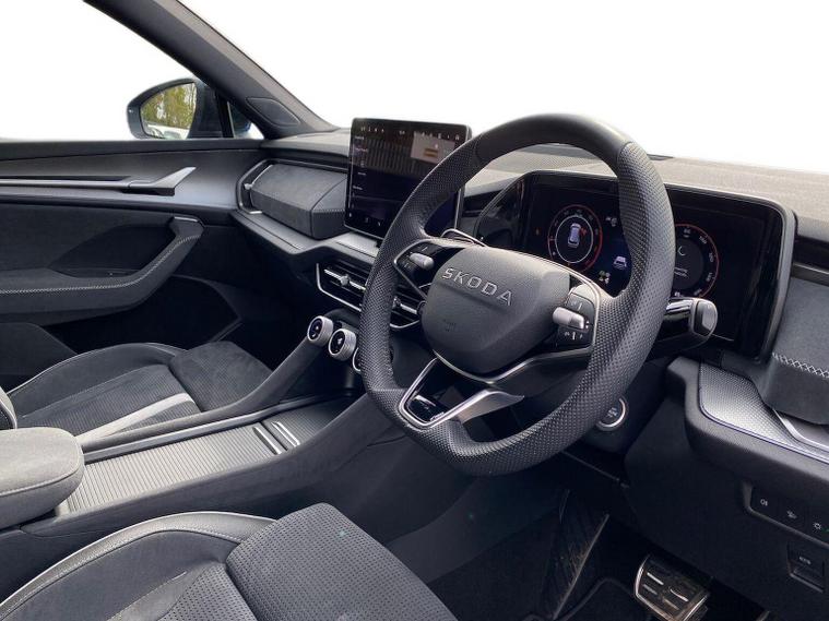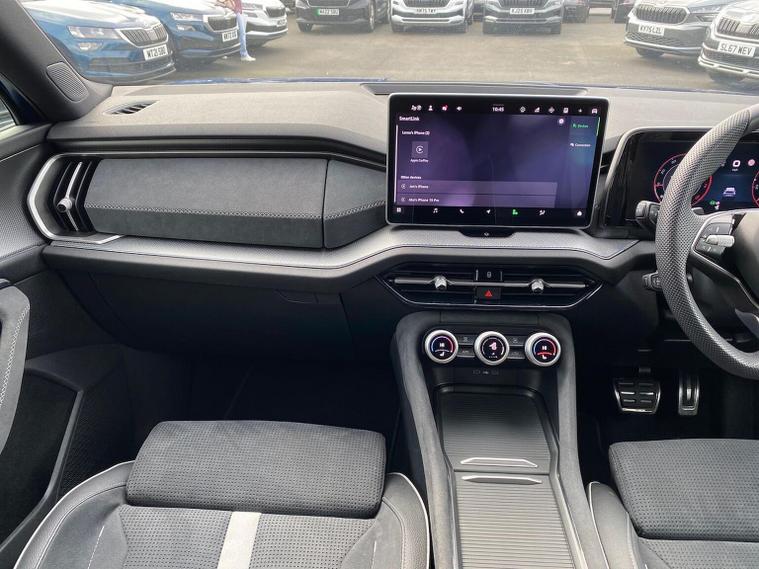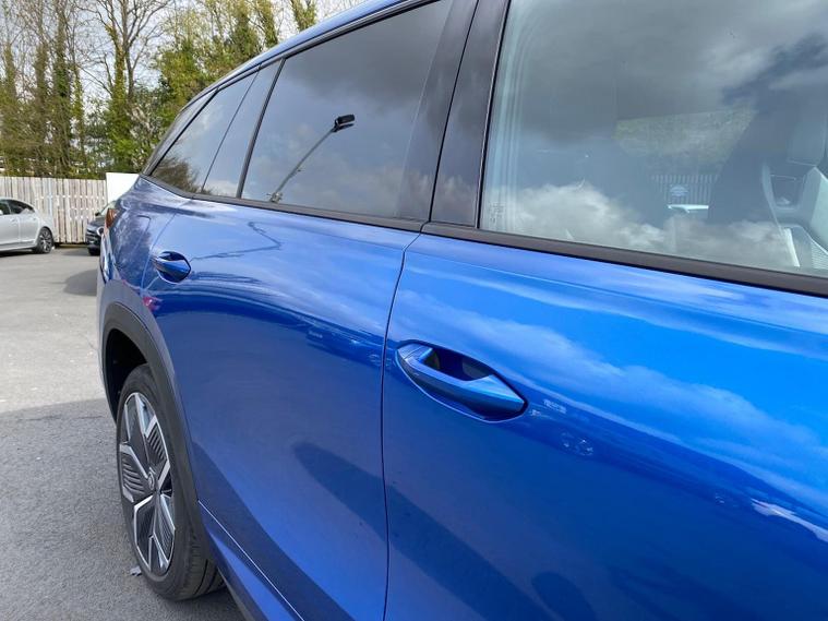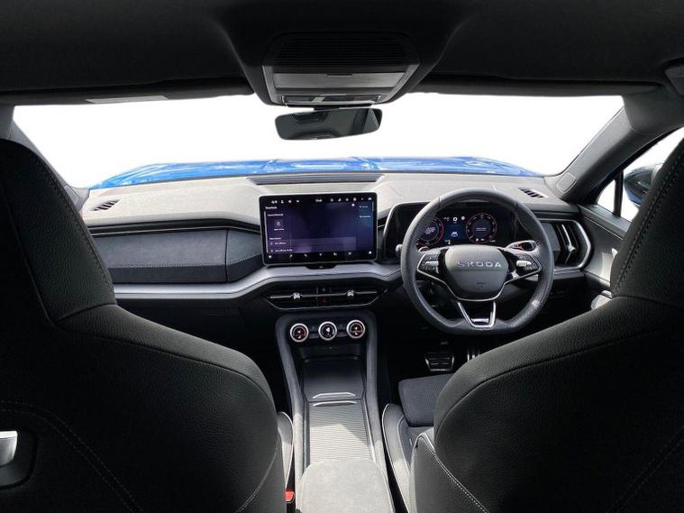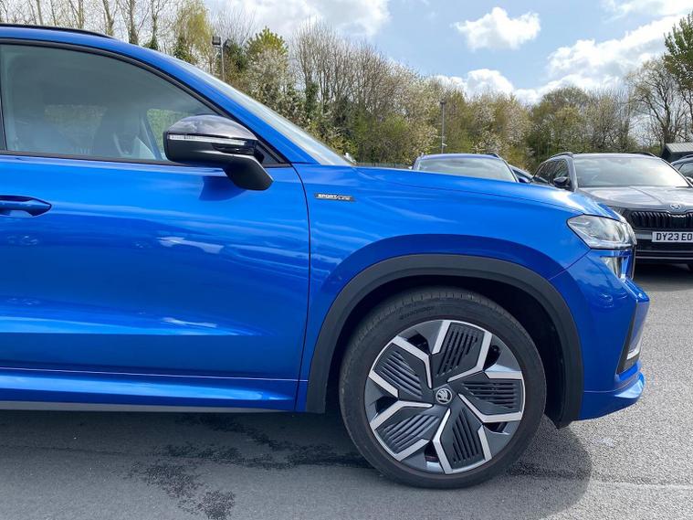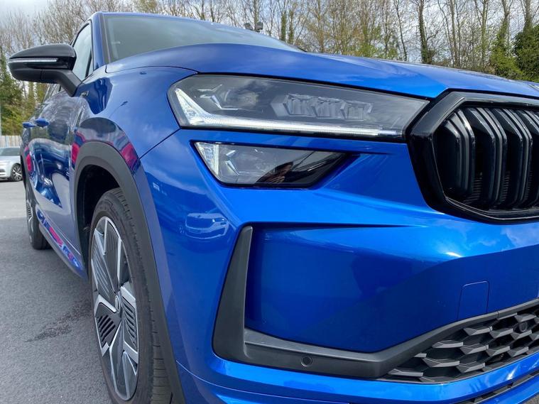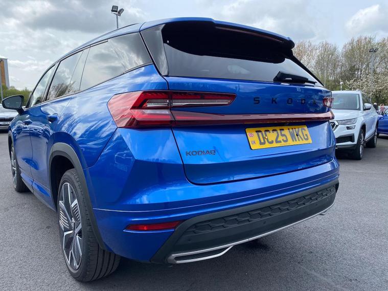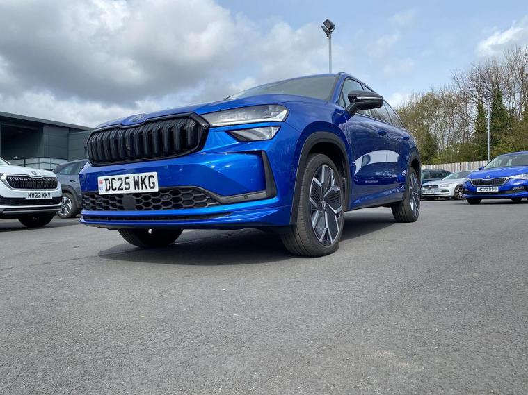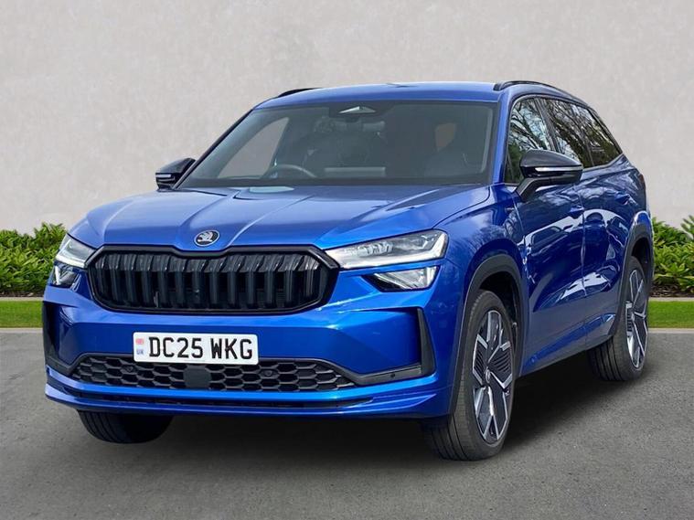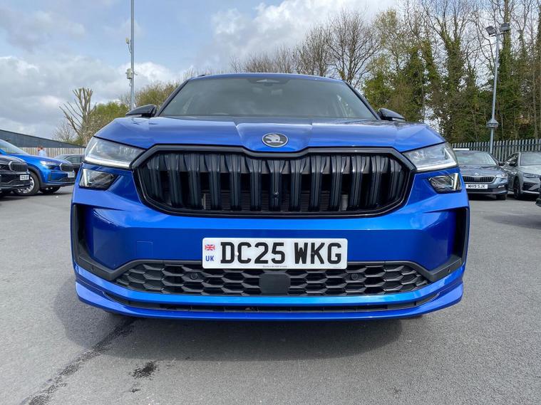 SKODA KODIAQ 1.5 TSI e-TEC MHEV SportLine – 150PS, DSG, Euro 6, 7-Seat Registration: DC25WKG Stock No.: V006-34767 Mileage: 6, 766 miles This low-mileage ŠKODA Kodiaq 1.5 TSI e-TEC MHEV SportLine delivers an impressive blend of sporty styling, hybrid efficiency and seven-seat practicality. Powered by the refined 150PS mild-hybrid petrol engine paired with the smooth DSG automatic gearbox, it offers a responsive, efficient and comfortable driving experience suited to both family life and long-distance travel. Finished in standout Race Blue Metallic, this SportLine model combines bold exterior styling with a premium, performance-inspired cabin. The interior features Sports/Microsuede upholstery, offering a high-quality, tactile finish that enhances comfort and visual appeal. This example is equipped with desirable practical upgrades, including an electric tow bar with adaptor, a space-saving spare wheel, and the highly versatile 7-seat configuration with a variable boot floor. It also benefits from Care Connect and Infotainment Online services for three years, providing long-term digital support and convenience. Key Features & Options Exterior & Styling Race Blue Metallic paint SportLine exterior styling package Dynamic, premium road presence Interior & Comfort Sports/Microsuede upholstery (Enq/Kod Sports/Suede) SportLine interior design High-quality, performance-inspired cabin finish Functionality & Practicality Electric tow bar with adaptor Tow bar with adapter ND1 adaptor included 7-seat configuration Third row seating Variable boot floor Rear stabiliser bar 18" space-saving spare wheel Tool kit and jack Performance & Efficiency 1.5 TSI e-TEC mild-hybrid petrol engine (150PS) DSG automatic transmission Euro 6 compliant Connectivity & Services Care Connect (3 years) This vehicle is apart of Skoda approved + programme