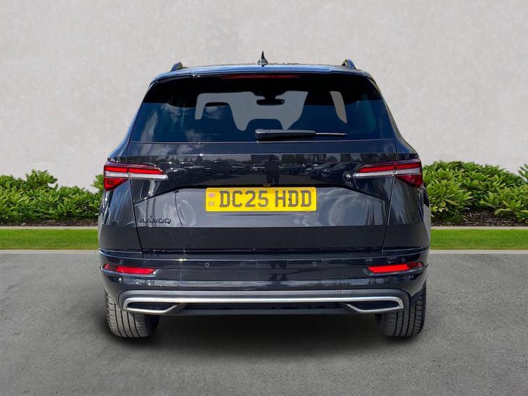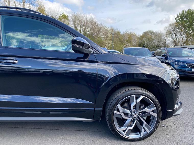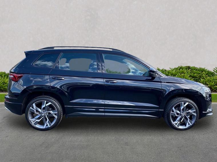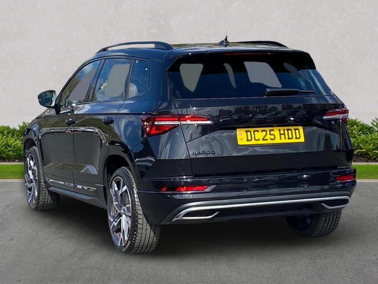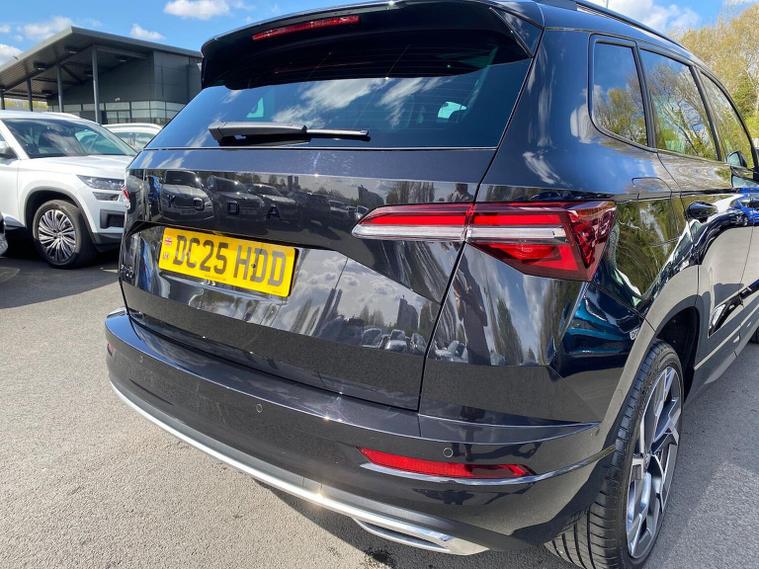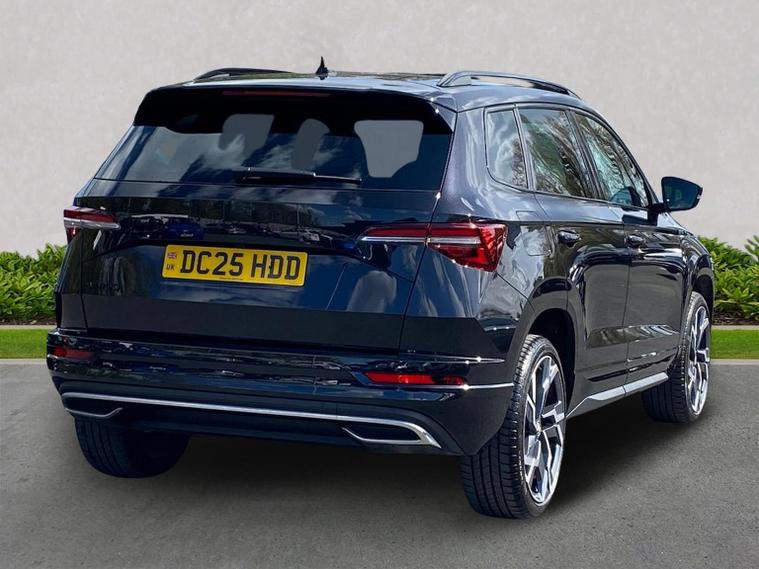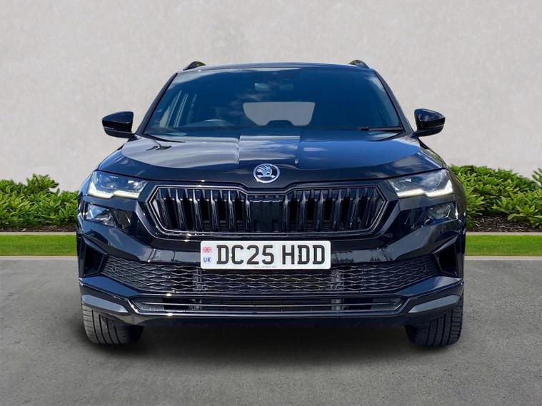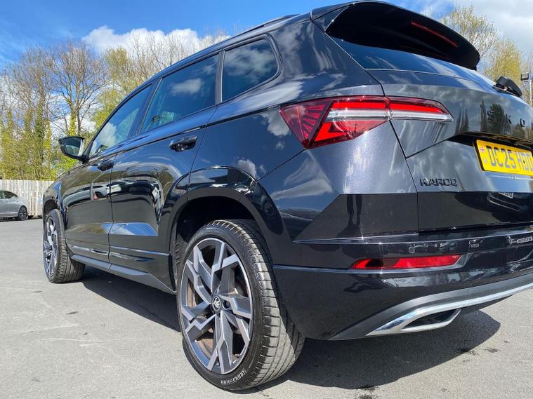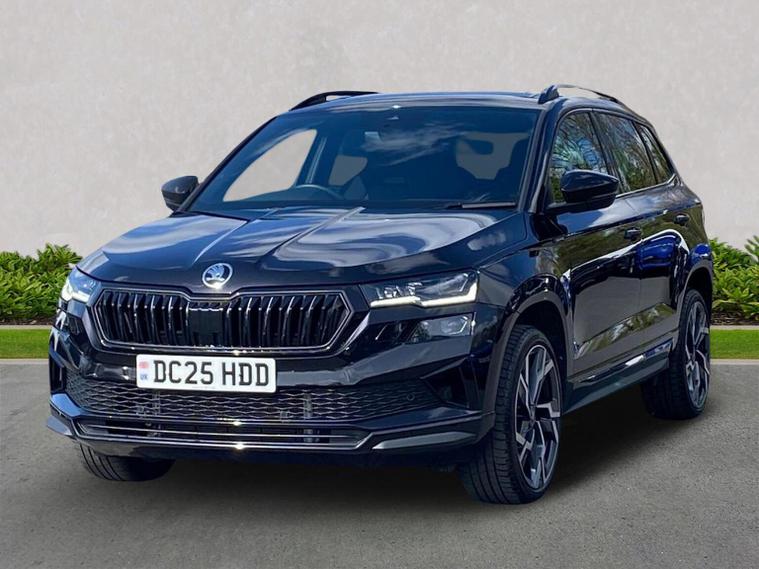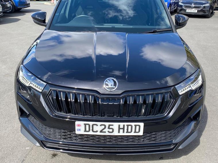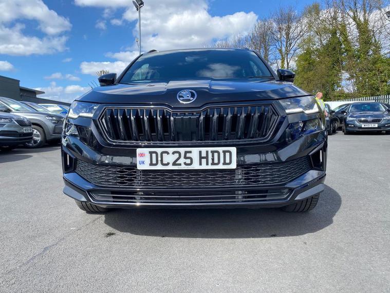 SKODA KAROQ 1.5 TSI ACT SportLine Edition – 150PS, DSG, Euro 6 Registration: DC25HDD Stock No.: V006-34768 Mileage: 4, 630 miles This low-mileage ŠKODA Karoq 1.5 TSI ACT SportLine Edition combines sporty styling, advanced technology, and refined driving dynamics. Powered by the efficient and responsive 150PS 1.5 TSI ACT engine paired with the smooth DSG automatic gearbox, it delivers a confident and engaging drive while maintaining excellent fuel efficiency. Finished in Black Magic Pearl Effect, the SportLine Edition presents a bold and dynamic exterior, complemented by the exclusive SportLine interior, offering a premium, performance-inspired cabin environment. This example benefits from a highly desirable specification, including Dynamic Chassis Control, Adaptive Cruise Control with follow-to-stop, heated front and rear seats, Columbus satellite navigation, and a heated windscreen—all part of the enhanced AM Edition SE/SL package. With just 4, 630 miles, this Karoq offers an exceptional opportunity to own a nearly new, high-specification SUV. Key Features & Options Exterior & Styling Black Magic Pearl Effect paint SportLine Edition styling Headlight washers Interior & Comfort SportLine interior Heated front and rear seats Heated windscreen Columbus satellite navigation with 9.2" touchscreen, WLAN & web radio Driving Dynamics & Safety Dynamic Chassis Control Progressive steering Adaptive Cruise Control with follow-to-stop & speed limiter Front Assist with emergency braking Rear shock absorption (UC8) Front shock absorption (G03) Connectivity & Services Care Connect (3 years) + Infotainment Online (3 years) Proactive Services (10 years) Practicality Temporary steel space-saver spare wheel (215/60 R16) Tool kit and jack Space-saving spare wheel Plane luggage/load compartment floor Additional Features AM Edition SE/SL package This vehicle is apart of the Skoda approved + programme