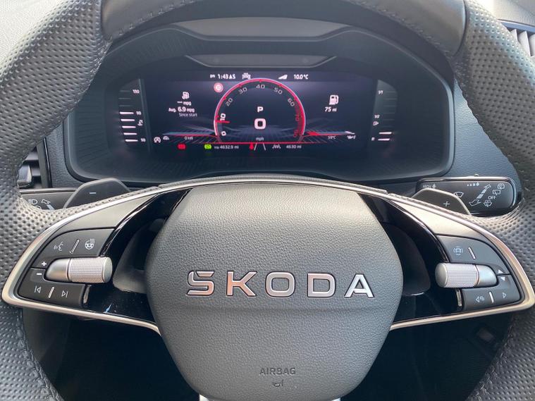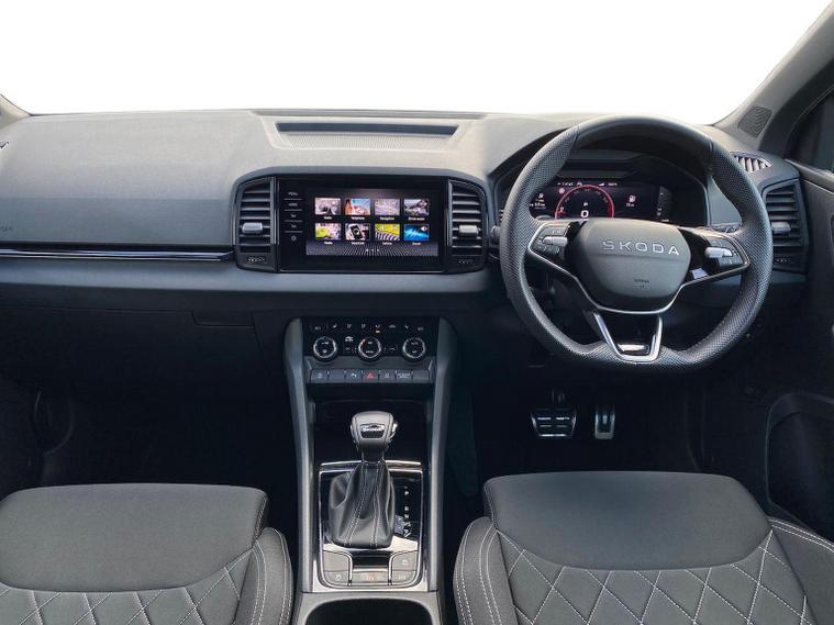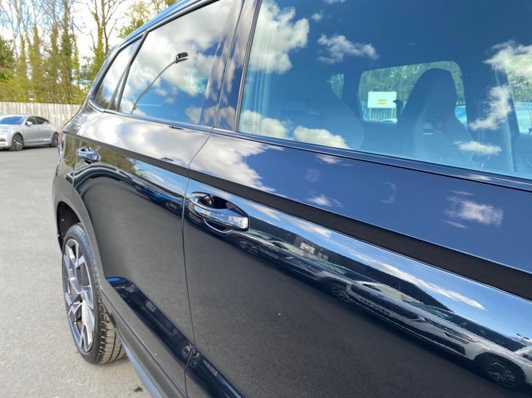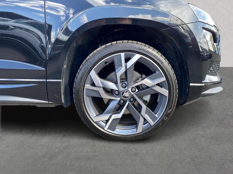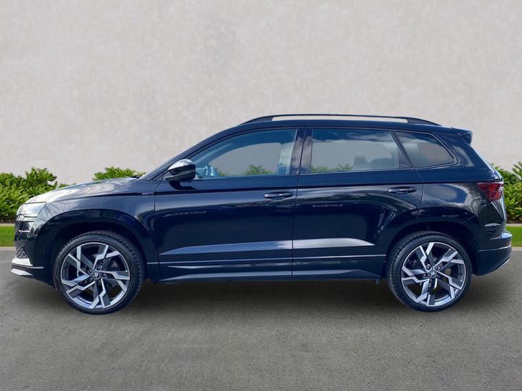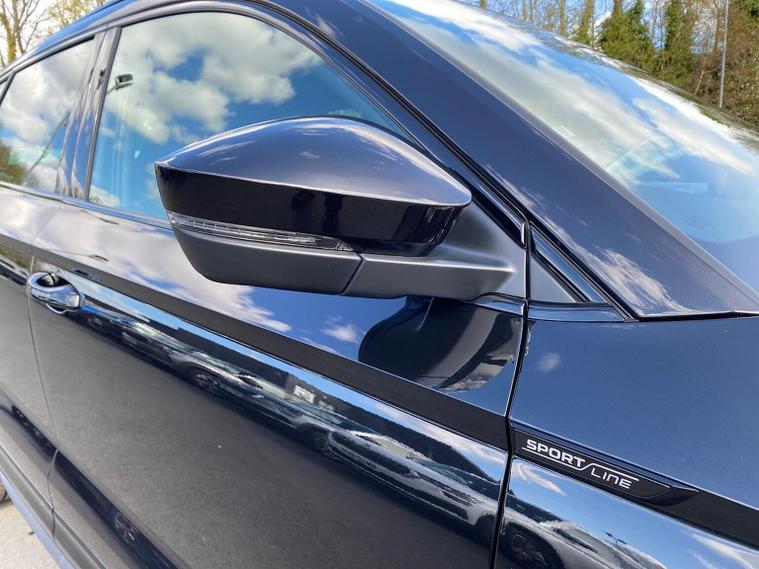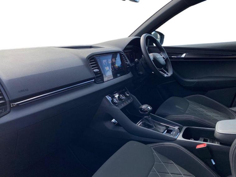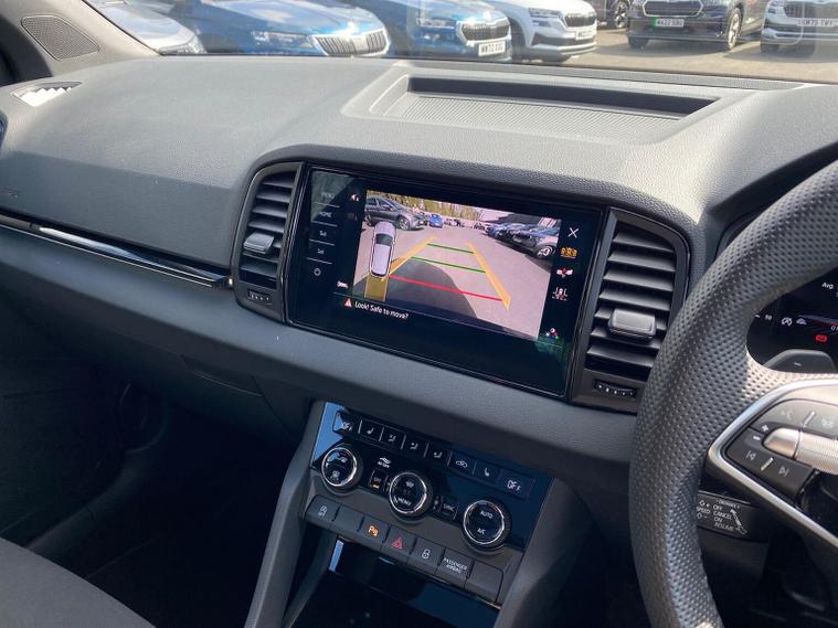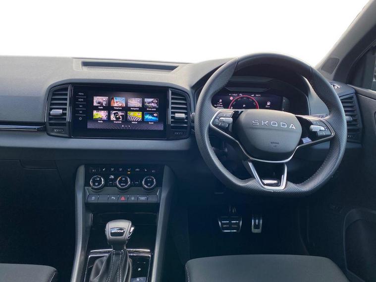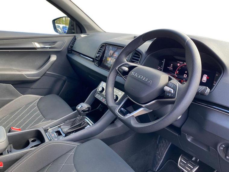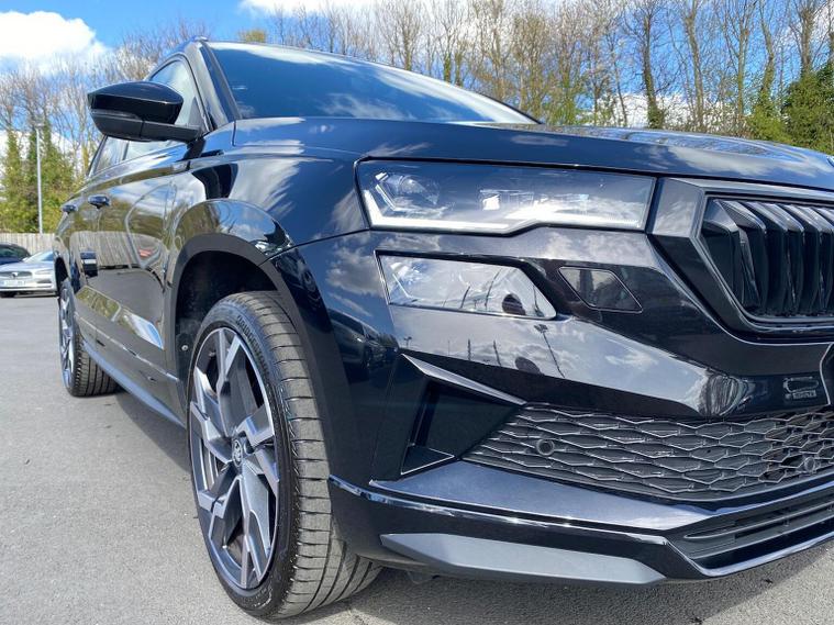 SKODA KAROQ 1.5 TSI ACT SportLine Edition – 150PS, DSG, Euro 6 Registration: DC25HDD Stock No.: V006-34768 Mileage: 4, 630 miles This low-mileage ŠKODA Karoq 1.5 TSI ACT SportLine Edition combines sporty styling, advanced technology, and refined driving dynamics. Powered by the efficient and responsive 150PS 1.5 TSI ACT engine paired with the smooth DSG automatic gearbox, it delivers a confident and engaging drive while maintaining excellent fuel efficiency. Finished in Black Magic Pearl Effect, the SportLine Edition presents a bold and dynamic exterior, complemented by the exclusive SportLine interior, offering a premium, performance-inspired cabin environment. This example benefits from a highly desirable specification, including Dynamic Chassis Control, Adaptive Cruise Control with follow-to-stop, heated front and rear seats, Columbus satellite navigation, and a heated windscreen—all part of the enhanced AM Edition SE/SL package. With just 4, 630 miles, this Karoq offers an exceptional opportunity to own a nearly new, high-specification SUV. Key Features & Options Exterior & Styling Black Magic Pearl Effect paint SportLine Edition styling Headlight washers Interior & Comfort SportLine interior Heated front and rear seats Heated windscreen Columbus satellite navigation with 9.2" touchscreen, WLAN & web radio Driving Dynamics & Safety Dynamic Chassis Control Progressive steering Adaptive Cruise Control with follow-to-stop & speed limiter Front Assist with emergency braking Rear shock absorption (UC8) Front shock absorption (G03) Connectivity & Services Care Connect (3 years) + Infotainment Online (3 years) Proactive Services (10 years) Practicality Temporary steel space-saver spare wheel (215/60 R16) Tool kit and jack Space-saving spare wheel Plane luggage/load compartment floor Additional Features AM Edition SE/SL package This vehicle is apart of the Skoda approved + programme