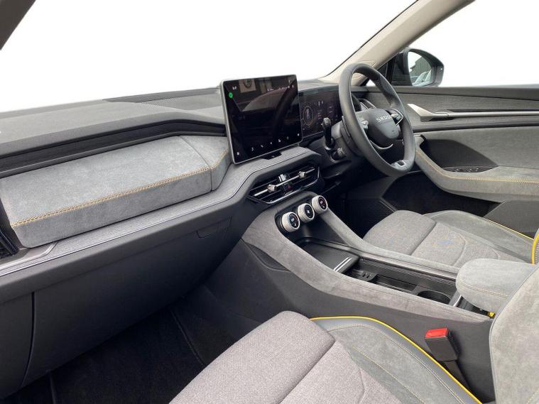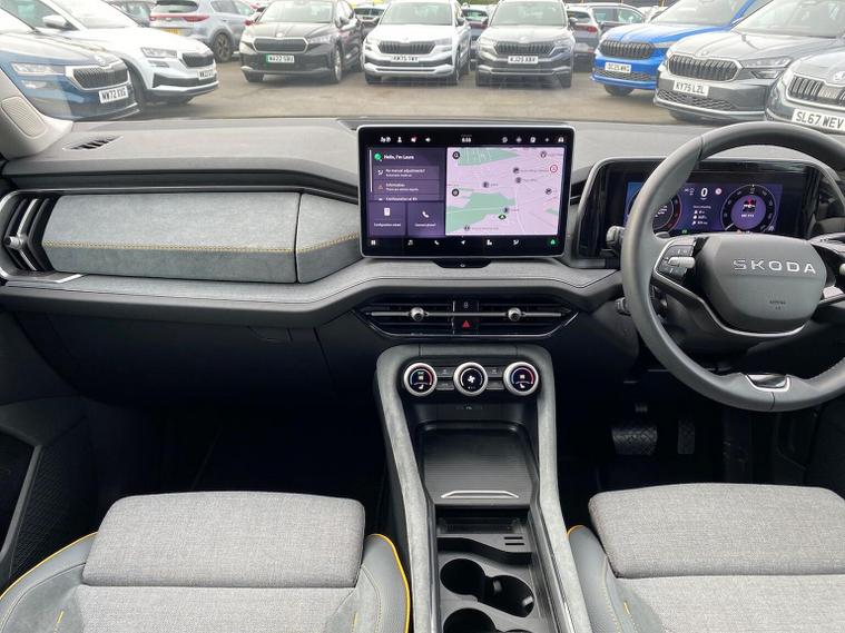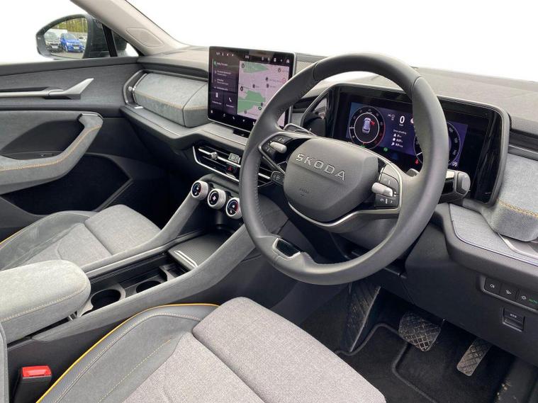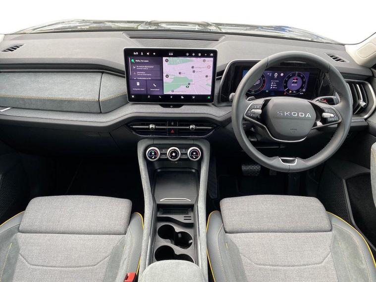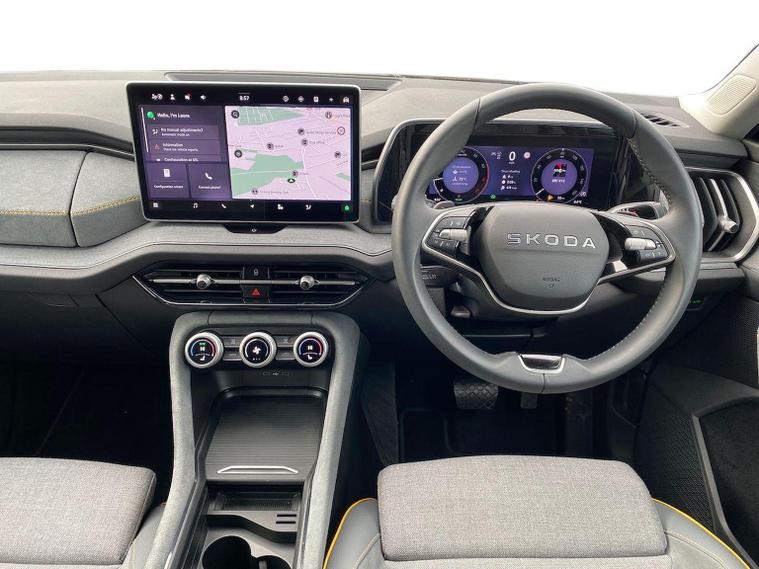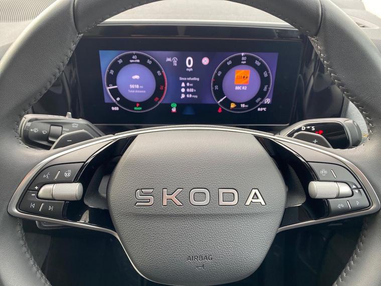 SKODA KODIAQ 1.5 TSI e-TEC MHEV SE – 150PS, DSG, Euro 6, 7-Seat Registration: DC25XRT Stock No.: V006-34769 Mileage: 5, 618 miles This low-mileage ŠKODA Kodiaq 1.5 TSI e-TEC MHEV SE offers the perfect combination of space, efficiency and modern technology. Powered by the refined 150PS mild-hybrid petrol engine paired with the smooth DSG automatic gearbox, it delivers a quiet, responsive and economical drive—ideal for families and long-distance comfort. Finished in Black Magic Pearl Effect, this Kodiaq presents a sleek and premium exterior, complemented by the elegant Lounge interior design selection. The cabin features fabric/microsuede upholstery, chrome-plated decorative elements and upgraded interior inserts, creating a sophisticated and welcoming environment. This example is equipped with the desirable Driving Assistance Package, adding advanced safety and convenience features such as Adaptive Cruise Control, Lane Assist Plus, Traffic Jam Assist, and the Proactive Passenger Protection System. The Winter Package further enhances comfort with heated front and rear seats and a heated leather multifunction steering wheel with paddles. With seven seats, a variable boot floor, and a space-saving spare wheel, this Kodiaq is exceptionally practical while maintaining a premium feel throughout. Key Features & Options Exterior & Styling Black Magic Pearl Effect paint Chrome-plated decorative strips Lounge design selection interior styling Interior & Comfort Lounge interior (fabric/microsuede upholstery) Heated front and rear seats 2-spoke heated leather multifunction steering wheel with paddles Decorative inserts and lower trim enhancements Driving Assistance & Safety Driving Assistance Package Adaptive Cruise Control Lane Assist Plus with semi-automatic emergency control Traffic Jam Assist Proactive passenger protection system Driver assistance sensor package Practicality 7-seat configuration Third row seating Variable boot floor Rear stabiliser bar 18" space-saving spare wheel Tool kit and jack Connectivity & Services Care Connect (3 years) + Infotainment Online (3 years) Proactive services included This vehicle is apart of the Skoda approved + programme