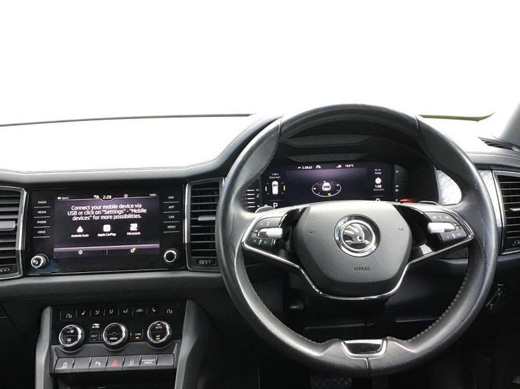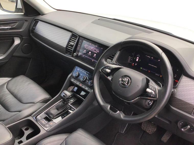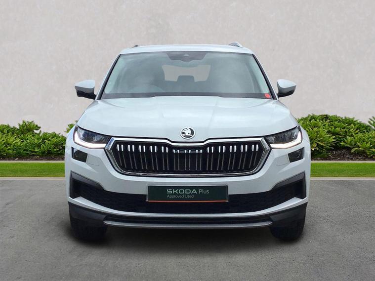 Introducing the stunning 2024 Skoda Kodiaq 1.5 TSI ACT SE L Executive SUV, now available at Lookers Skoda Guildford. This exceptional vehicle, finished in a sleek white, boasts a wealth of features designed to enhance your driving experience. With a spacious seven-seat configuration, it is perfect for families or those who require extra room for passengers and luggage. The automatic transmission and front-wheel drive ensure a smooth and effortless ride, while the powerful petrol engine delivers an impressive 150 PS. This Kodiaq comes equipped with modern conveniences such as Bluetooth connectivity, a touch screen display, and compatibility with Apple CarPlay and Android Auto, making it easy to stay connected on the go. Additional features include LED headlights, heated seats, front and rear parking sensors, and a power tailgate, all designed to provide comfort and safety for you and your passengers. With only 1 previous owner and a mileage of 24, 527 miles, this vehicle is in excellent condition and comes with a 12-month warranty for your peace of mind. At Lookers, we pride ourselves on our commitment to customer satisfaction. Our dedicated team is here to assist you in finding your ideal vehicle. We offer a full range of aftersales services, ensuring your Kodiaq remains in top condition for years to come. Don’t miss out on this fantastic opportunity—contact Lookers Skoda Guildford today to arrange a test drive!