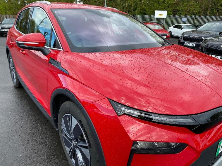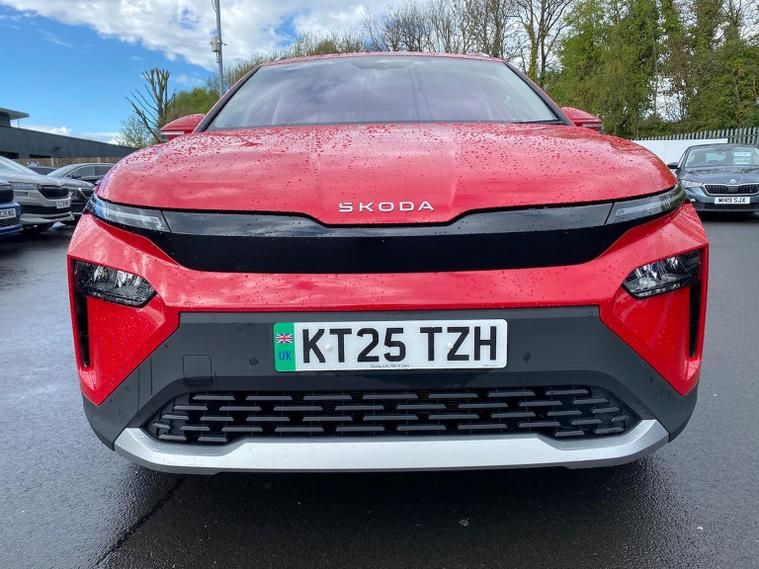Škoda Elroq 82kWh 85 Edition Presenting this exceptionally well-specified Škoda Elroq 82kWh 85 Edition, finished in the premium Velvet Red Metallic paintwork and paired with the stylish Loft Design Selection interior. With only 4, 474 miles recorded, this vehicle offers near-new condition, impressive electric performance, and a generous suite of comfort and technology features. Powered by a refined 286 PS electric motor, the Elroq delivers smooth, responsive acceleration and a quiet, composed driving experience. Its 82kWh battery provides excellent real-world usability, making it ideal for both daily commuting and longer journeys. Specification Highlights 82kWh battery with strong range capability 286 PS electric drivetrain with automatic transmission Velvet Red Metallic exterior Loft interior design for a modern, clean cabin environment Winter Package (PFW) Designed for maximum comfort in colder conditions: Tri-zone climate control (KH7) Heated front and rear seats (4A4) Heated windscreen (4GW) Connectivity & Digital Services Enhanced convenience and control through extended online features: Infotainment Online – 3 years Proactive Services – 10 years These services provide access to real-time information, remote vehicle functions, and long-term digital support. This vehicle is apart of the Skoda Approved + package