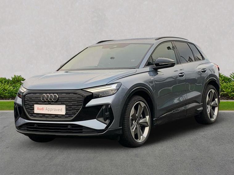 Reference: SA75JJK. Teesside Audi are offering a rare opportunity to own this AUDI Q4 e-Tron 210kW 45 82kWh Black Edition 5dr Auto. This 1 owner vehicle has full service history, was supplied by our group and has been maintained by us too. Since being returned to us it has been fully checked over by our fully trained, experienced and skilled technicians and is ready to go. ===================================================================== Audi’s compact electric SUV, the Q4 e-tron delivers modern styling, a refined ride, and all the benefits of EV driving. Spacious and tech-focused, it’s perfect for those making the jump to premium electric mobility.Standard features on this car include Integrated SATELLITE NAVIGATION with real-time routing and traffic updates. CLIMATE CONTROL which automatically regulates cabin temperature for you. VIRTUAL COCKPIT so that you can customise the digital dashboard with maps, gauges, and media. CRUISE CONTROL to maintain a steady speed without constant pedal input. FRONT AND REAR PARKING SENSORS to help manoeuvring in tight spaces whether you are going forward or reversing. REAR CAMERA for easier and safer reversing. HEATED FRONT SEATS to keep your comfortable in cold weather conditions. Plus lots more. - As a VAT Qualifying vehicle it has the additional benefit to VAT Registered individuals or companies buying the car solely for business use, as they could reclaim the 20% VAT from the purchase price. ===================================================================== 150 MULTI POINT CHECK | AUDI PARTS |FACTORY TRAINED TECHNICIANS 12 MONTH MANUFACTURER BACKED WARRANTY & ROADSIDE ASSISTANCE. AUDI CONNECTED|HISTORY CHECKS ===================================================================== Lookers are an authorised representative for a wide range of award-winning car manufacturers, providing you with an unparalleled choice of quality and approved used cars, currently for sale. Our exceptional standards ensure you receive the best possible service when you purchase with us, ensuring peace of mind when you drive away with your new vehicle. With us representing so many great brands we are an excellent position to offer you a fair and transparent price for your part exchange. At Lookers, we care about our customers and want to ensure that the price you see is the price you pay. Our Transparent pricing policy simply means, honest, straightforward pricing offering our vehicles at the best price possible; ensuring no haggling or hassle for you.