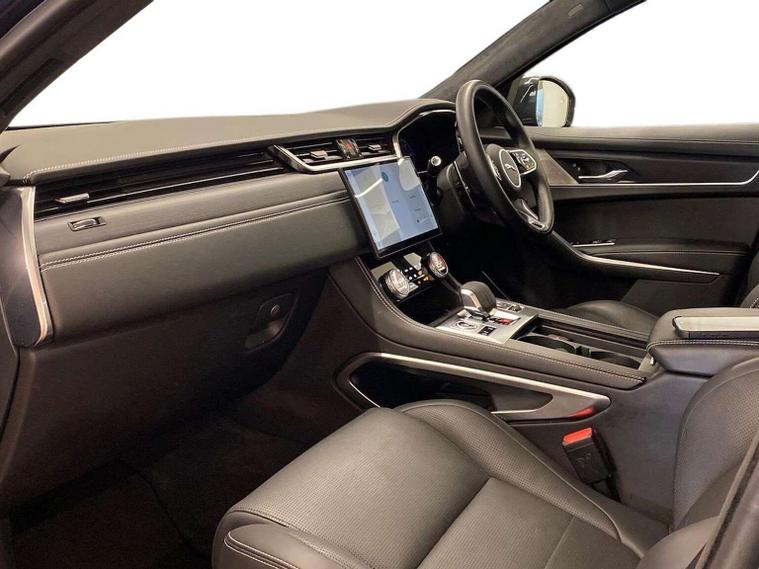 "This 2024 Jaguar F-PACE D200 R-Dynamic HSE Black 90th Anniversary Edition is a superb example, having had only one owner since new. This striking SUV boasts a powerful 2.0 litre diesel engine, delivering impressive performance with its Four Wheel Drive system and meeting Euro 6 emission standards. The R-Dynamic HSE Black trim enhances its already sophisticated appeal, while the 90th Anniversary Edition signifies its special status. Experience exceptional comfort and technology with features like 16-way heated and ventilated electric memory front seats that even offer a massage function, ensuring every journey is a pleasure. The Meridian Sound System provides an immersive audio experience, and for added peace of mind, it includes Blind Spot Assist and Adaptive Cruise Control with Steering Assist. The spacious boot offers ample room for all your needs, and the fixed panoramic roof floods the cabin with light. This F-PACE accelerates from 0-60mph in a swift 7.8 seconds, demonstrating its dynamic capability, and with a towing weight of 2400 kg, it is as practical as it is refined."