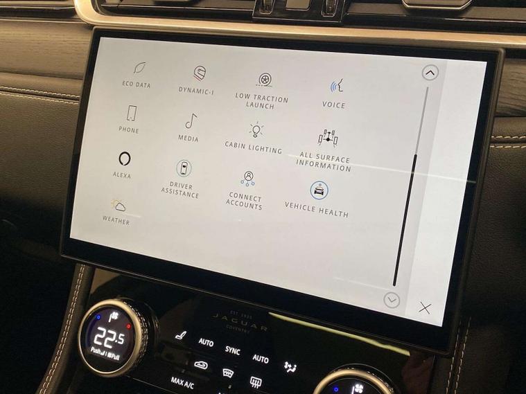 "This 2024 Jaguar F-PACE D200 R-Dynamic HSE Black 90th Anniversary Edition presents an exceptional ownership opportunity, having been meticulously maintained by just one owner from new. This striking four wheel drive model boasts a powerful yet efficient 2.0L diesel engine, compliant with Euro 6 emissions standards. Its R-Dynamic HSE Black 90th Anniversary Edition trim level signifies a premium specification, further enhanced by features such as automatic headlights, a rear camera with parking assistance, and seamless integration with Android Auto. Inside, occupants are treated to the comfort of 16 way heated, ventilated, and massaging electric memory front seats with two way manual headrests, alongside a convenient 2 zone climate control system. Experience impressive performance with an acceleration of 0 to 60 mph in just 7.8 seconds, while enjoying remarkable fuel economy of up to 43 mpg, demonstrating its efficiency compared to other vehicles in its class. This F-PACE also offers a generous boot space, ideal for all your needs, and benefits from low CO2 emissions. With a towing weight of 2400 kg, it is as practical as it is stylish, and its low mileage of only 8514 miles for its age further underscores its excellent condition."