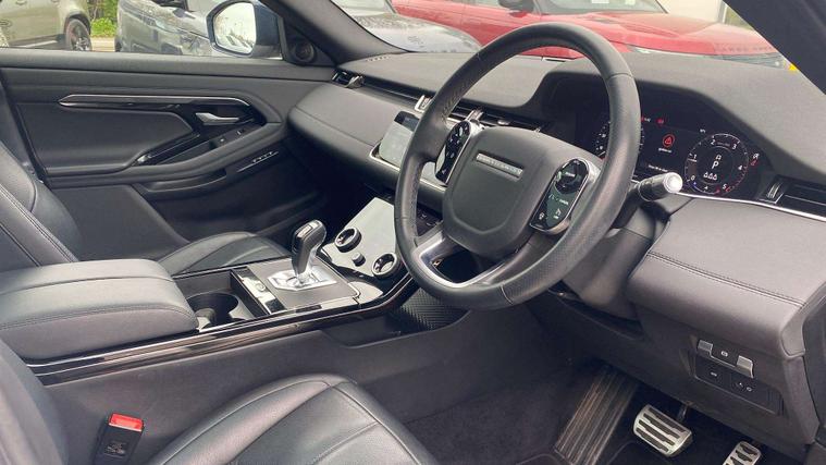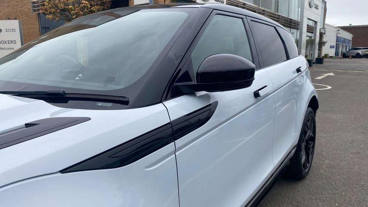 "This 2020 Land Rover Range Rover Evoque D180 R Dynamic SE presents an exceptional opportunity with its remarkably low mileage of just 23, 570 miles. As a Land Rover manufacturer approved vehicle, it benefits from the reassurance of a full service history, ensuring its continued reliability and performance. This Euro 6 compliant model features a capable 2.0L diesel engine paired with a four wheel drive drivetrain, offering confidence in all driving conditions. The R Dynamic SE trim enhances its appeal, complemented by a striking Black Exterior Pack and 20 inch 5 split spoke alloy wheels in gloss black. Further enhancing this Evoque's desirability are its premium features, including a fixed panoramic roof with a powered blind, allowing you to enjoy an open and airy cabin. The heated steering wheel provides added comfort during colder journeys, while the black contrast roof adds a sophisticated visual element. These carefully selected features, combined with its excellent provenance and low mileage, position this Range Rover Evoque as a standout choice compared to other vehicles in its class."