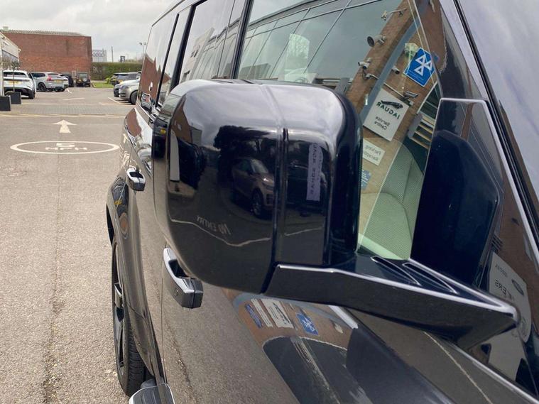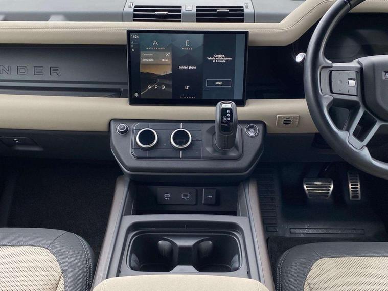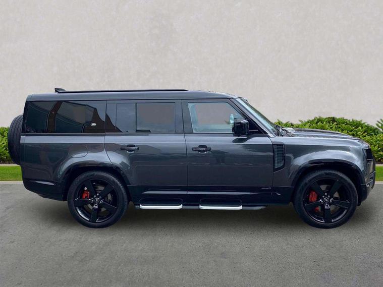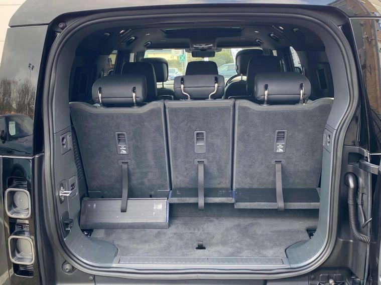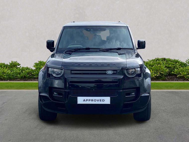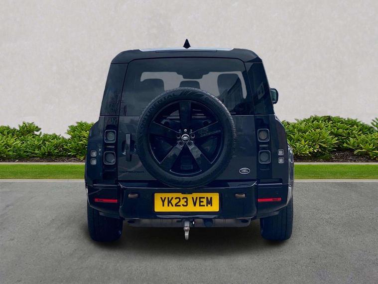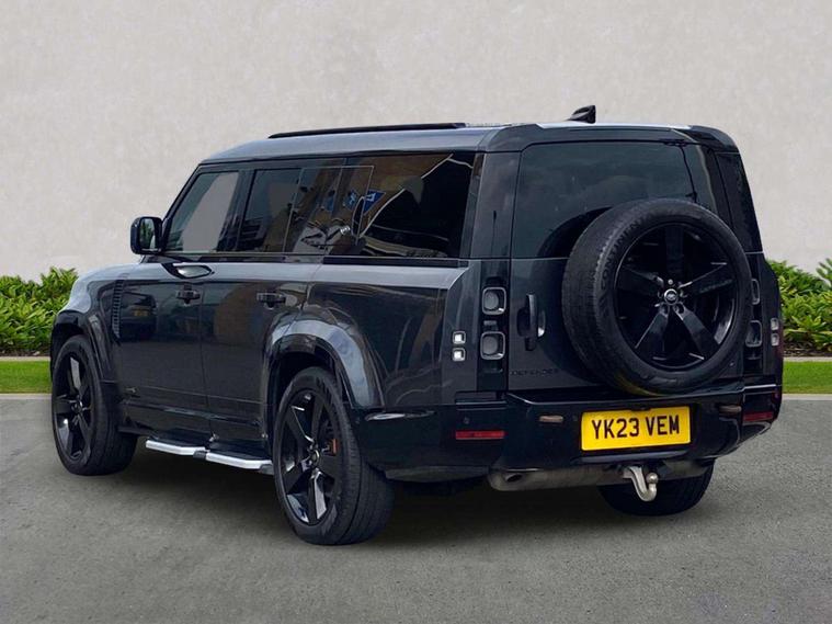 This 2023 Land Rover Defender 130 P400 X is a Land Rover manufacturer approved vehicle with a full service history and only one owner. It features a powerful 3.0L petrol engine and a four wheel drive drivetrain, meeting Euro 6 emissions standards. This Defender 130 X trim is equipped with 22 inch gloss black alloy wheels, a detachable towbar, and black exposed rear recovery eyes, alongside the Comfort and Convenience Pack which includes wireless phone charging and Android Auto. The Defender 130 P400 X offers impressive performance, accelerating from 0 to 60mph in just 6.3 seconds, demonstrating its capability. Its towing weight of 3000 kg makes it a highly versatile vehicle for various needs. These specifications highlight how this Defender 130 is a well maintained and high performing option for those seeking a robust and feature rich SUV.