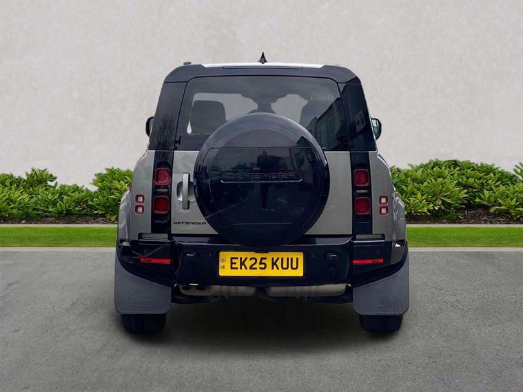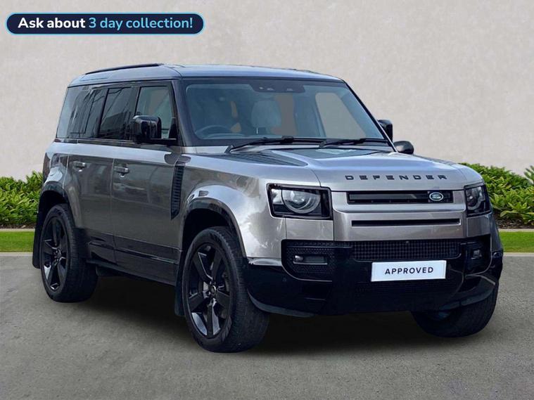 "This 2025 Land Rover Defender 110 D350 X Dynamic HSE is a Land Rover manufacturer approved vehicle with a full service history and only one owner. It features a powerful 3.0L Diesel engine, Four Wheel Drive, and meets Euro 6 emission standards, making it a robust and capable choice. The X Dynamic HSE trim is enhanced with an Extended Black Exterior Pack and striking 22in Gloss Black alloy wheels. Inside, you'll find luxurious 12 way and 14 way heated and cooled electric memory front seats, along with a practical Black Contrast Signature Graphic offering interior storage. This Defender 110 offers impressive performance, accelerating from 0 to 60mph in just 6.1 seconds, demonstrating its dynamic capabilities. Its substantial towing weight of 3500 kg means it's ready for any challenge, while the large boot space ensures ample room for all your gear. Furthermore, its position in a low insurance group indicates that running costs are kept competitive, making this Defender 110 a well rounded and desirable vehicle."