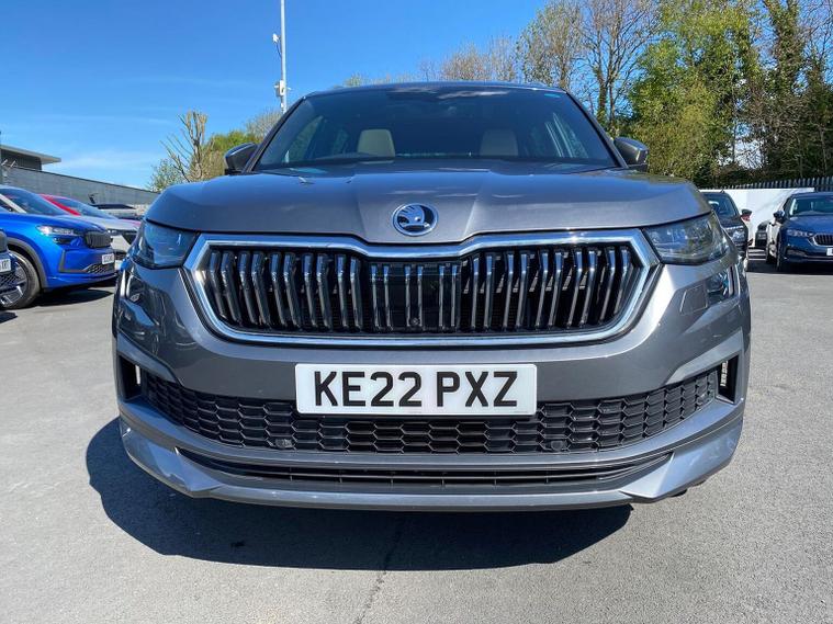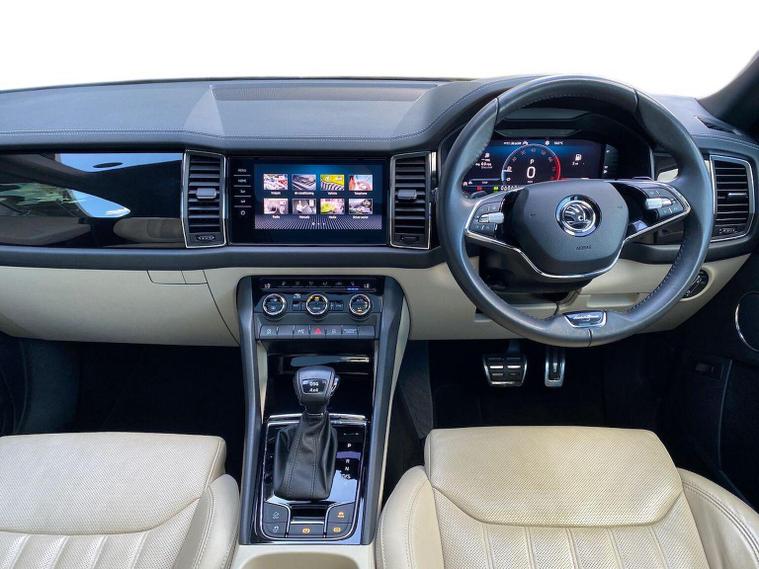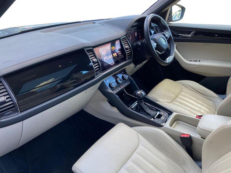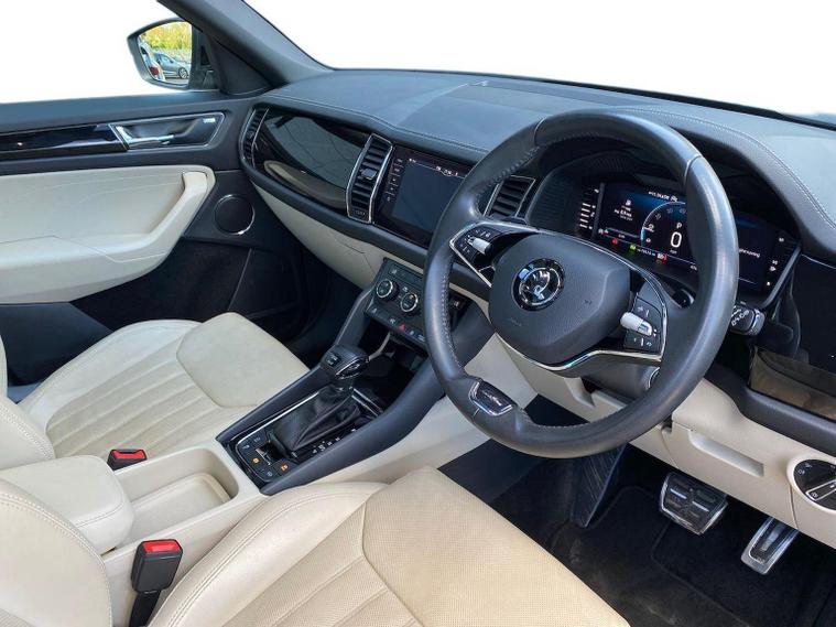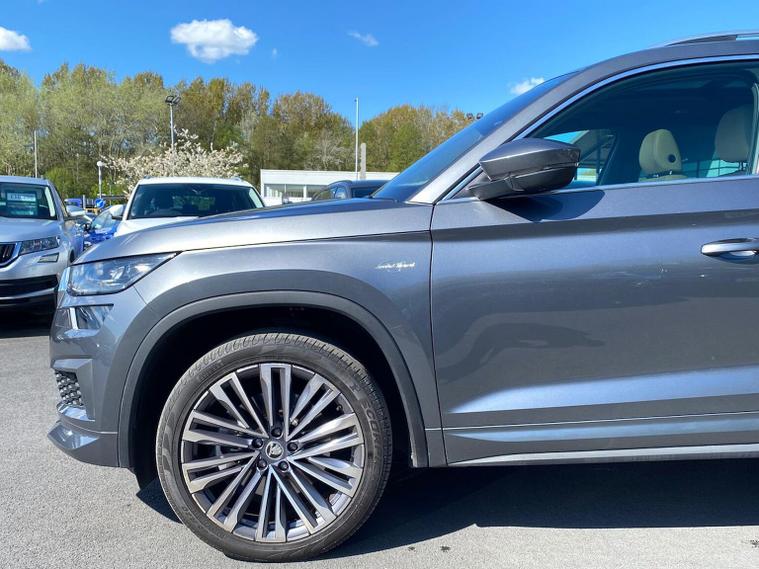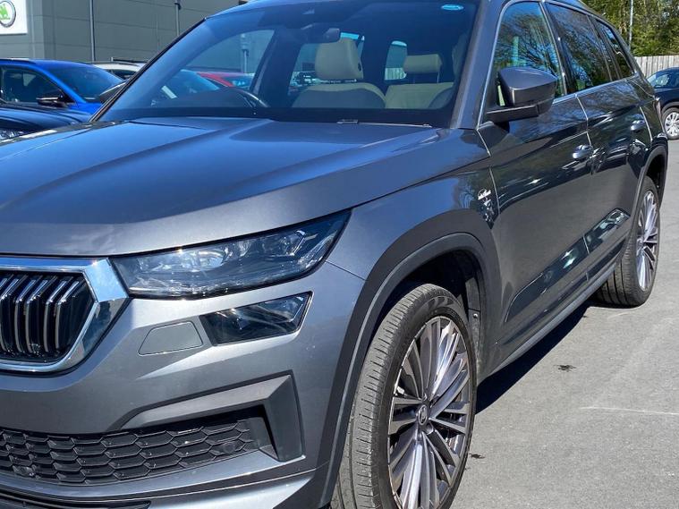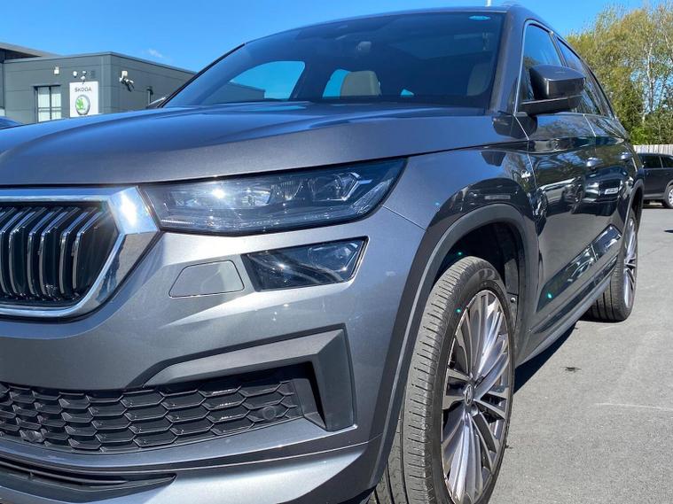 This Skoda Kodiaq Laurin & Klement 2.0 TSI 190 PS 4x4 DSG in Graphite Grey Metallic features 20? Merope anthracite alloy wheels, seven seats and a premium beige leather interior with black headlining. Key highlights include full LED Matrix headlights with adaptive front light system, panoramic sunroof, electrically adjustable front seats with memory, heated front and rear seats, tri-zone climate control, Canton sound system, Columbus satellite navigation, virtual cockpit, area view 360-degree camera, blind-spot detection, front and rear parking sensors and drive mode selection with 4x4 capability. Additional features include wireless charging, electrically operated boot, heated multifunction leather steering wheel, aluminium pedals, chrome exterior detailing, privacy glass and chrome roof rails, making this a highly specified and refined family SUV. We offer in-person appointments, personalised video walk-arounds, flexible test-drive availability, and a full range of finance options to support your purchase.