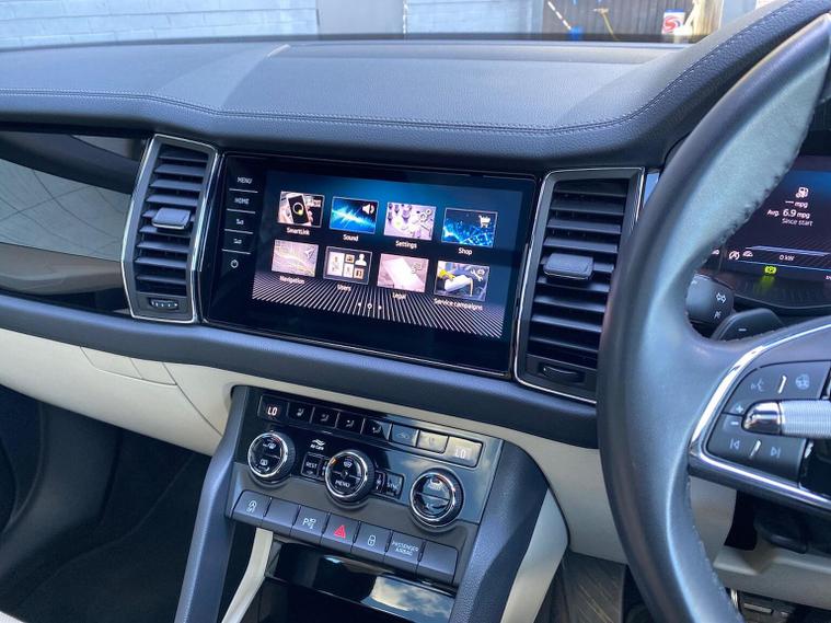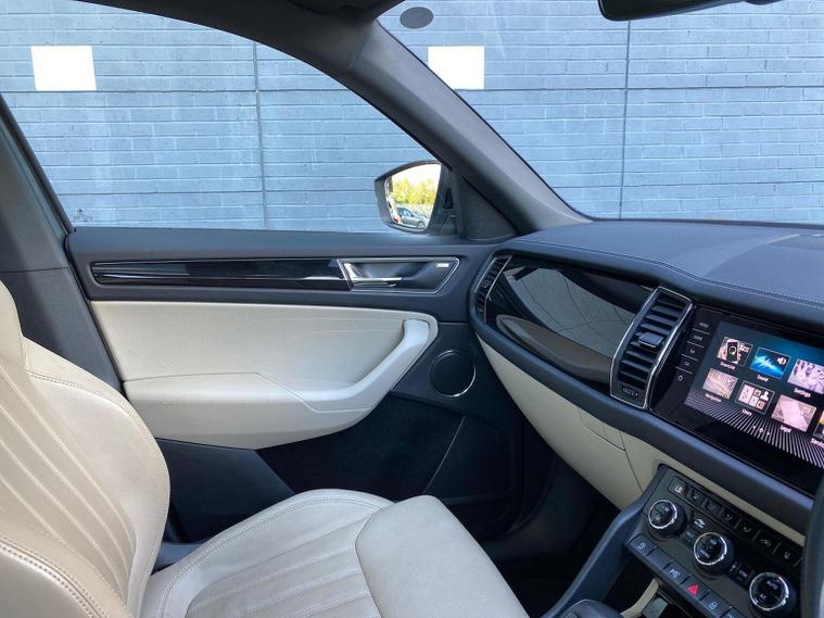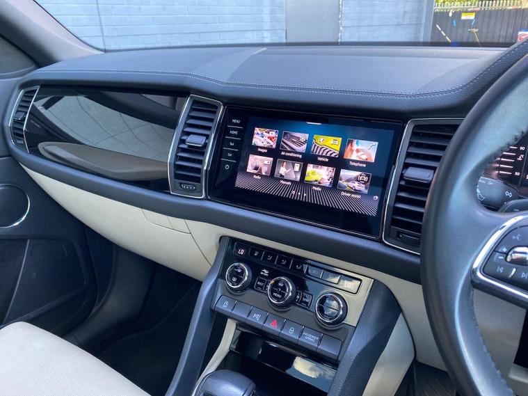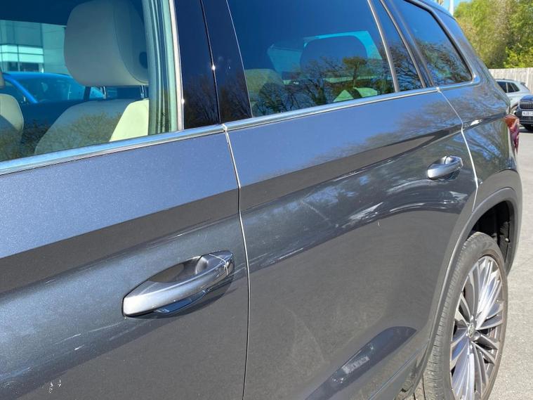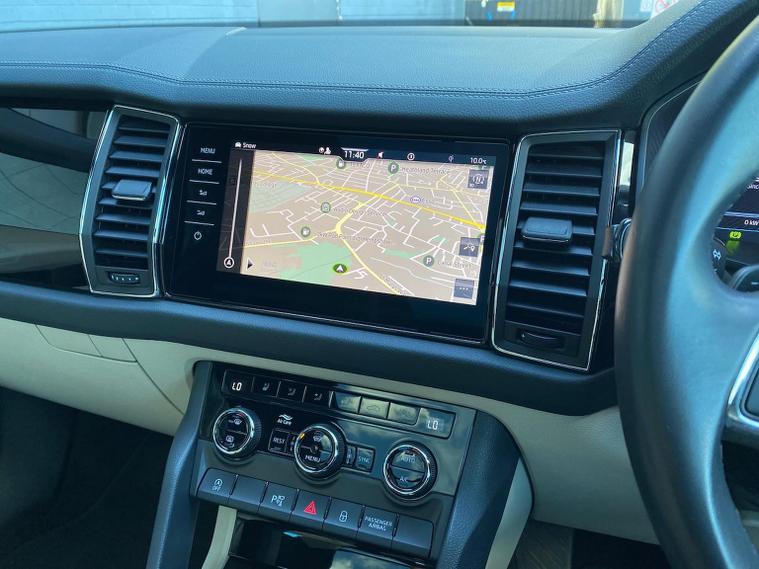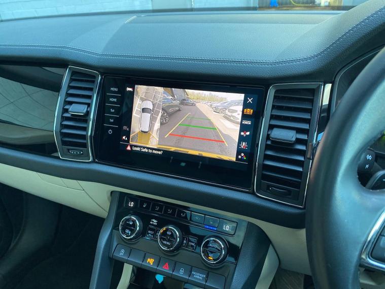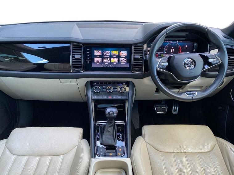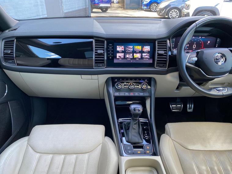 This Skoda Kodiaq Laurin & Klement 2.0 TSI 190 PS 4x4 DSG in Graphite Grey Metallic features 20? Merope anthracite alloy wheels, seven seats and a premium beige leather interior with black headlining. Key highlights include full LED Matrix headlights with adaptive front light system, panoramic sunroof, electrically adjustable front seats with memory, heated front and rear seats, tri-zone climate control, Canton sound system, Columbus satellite navigation, virtual cockpit, area view 360-degree camera, blind-spot detection, front and rear parking sensors and drive mode selection with 4x4 capability. Additional features include wireless charging, electrically operated boot, heated multifunction leather steering wheel, aluminium pedals, chrome exterior detailing, privacy glass and chrome roof rails, making this a highly specified and refined family SUV. We offer in-person appointments, personalised video walk-arounds, flexible test-drive availability, and a full range of finance options to support your purchase.