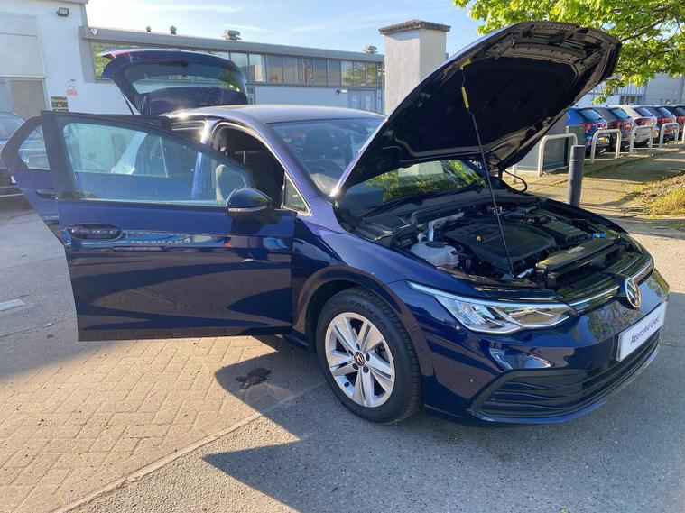 Volkswagen Golf 1.5 eTSI MHEV Life DSG (150 PS) – 2022 Registration: LD22 YUK | Mileage: 33, 000 | Atlantic Blue Metallic | Euro 6 A modern, efficient and well-equipped Volkswagen Golf 1.5 eTSI Life, finished in Atlantic Blue Metallic with a Soul-Black interior. This mild-hybrid petrol model delivers smooth DSG performance, excellent fuel efficiency and a strong 150 PS output, making it an ideal everyday hatchback with premium comfort and technology. Key Details 1.5 eTSI petrol mild-hybrid engine (150 PS) DSG automatic transmission 33, 000 miles Atlantic Blue Metallic exterior Soul-Black interior Euro 6 compliant Optional Equipment Winter Pack Heated front seats Heated leather-wrapped multifunction steering wheel with shift paddles Heated windscreen washer jets Connectivity & Online Services Mobile online services (UK-specific configuration) Standard Equipment Highlights Infotainment & Technology Discover Media Navigation with Streaming & Internet Wireless App-Connect 6-speaker audio system Dynamic road sign display Multifunction front-facing camera Safety & Security Anti-theft alarm with interior monitoring and towing protection Keyless-Go central locking system Comfort & Convenience Light & Sight Pack Auto-dimming rear-view mirror Rain sensor Driver Assistance Adaptive Cruise Control (ACC) with speed limiter Front Assist with autonomous emergency braking Pedestrian and cyclist monitoring Lane Assist (lane keeping system) Condition The car drives smoothly with responsive hybrid-assisted performance and seamless DSG gear changes. The interior is clean and well-maintained, and the exterior presents very well in Atlantic Blue Metallic with only light, age-appropriate marks. Volkswagen Approved Used Benefits (2026) Included as standard with an Approved Used Volkswagen: 1 Year Volkswagen Warranty 1 Year Roadside Assistance When financed with Solutions PCP from Volkswagen Financial Services: Up to 2 Services for only £99* 1 Year Volkswagen Warranty† 1 Year Roadside Assistance† £250 Deposit Contribution* *Servicing available on vehicles up to 8 years old. Covers two consecutive services. † Warranty and Roadside Assistance valid on vehicles under 8 years old and under 100, 000 miles at activation. Finance subject to status. Terms and conditions apply. Summary A well-specified and efficient Golf 1.5 eTSI Life featuring the desirable Winter Pack, Discover Media navigation, wireless connectivity and a comprehensive suite of driver-assistance systems. A refined, economical and modern hatchback with excellent everyday usability, now supported by the reassurance of Volkswagen Approved Used benefits.