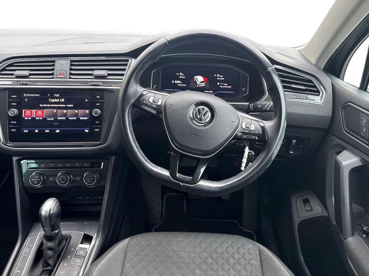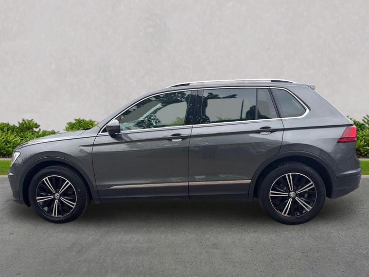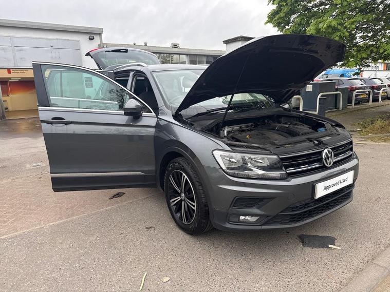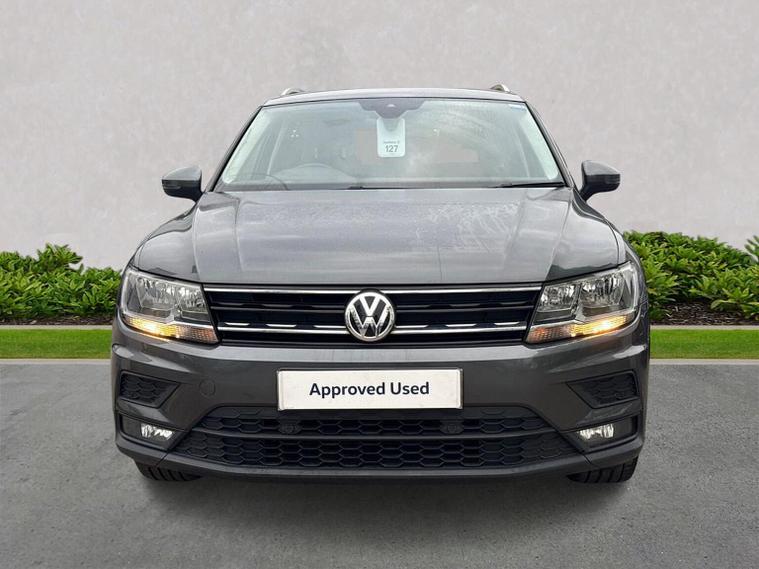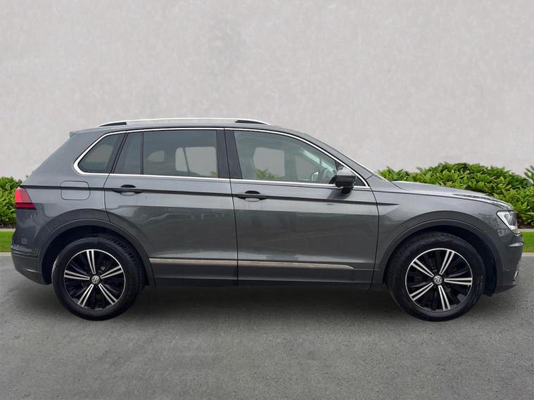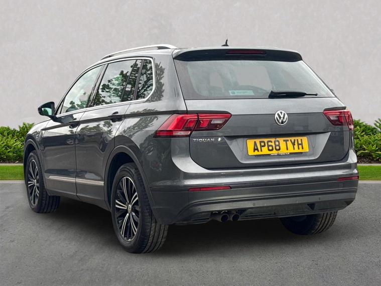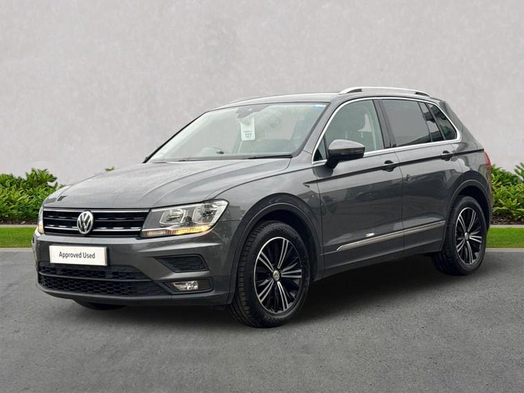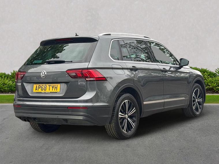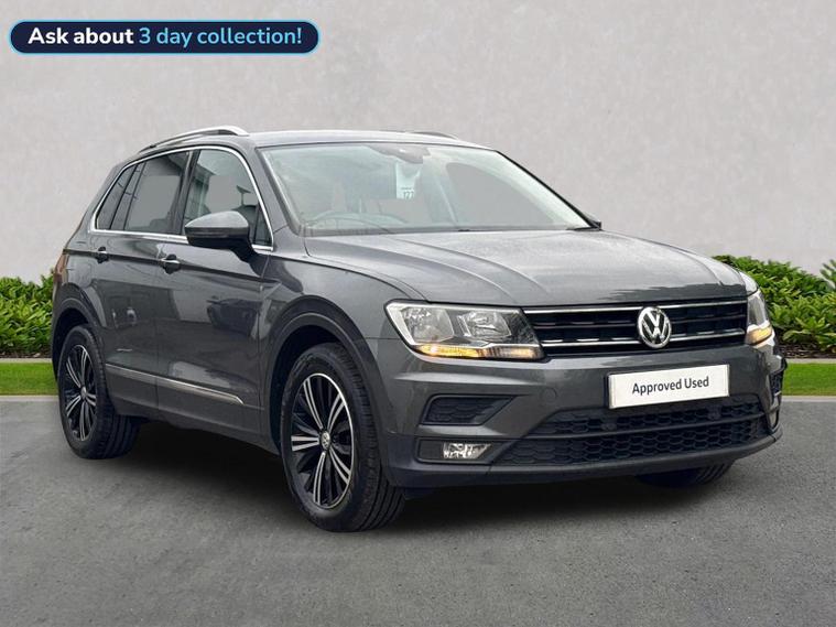 Volkswagen Tiguan 1.5 TSI EVO SE Navigation DSG (150 PS) – 2018 Registration: AP68 TYH | Mileage: 71, 428 | Indium Grey Metallic | Euro 6 A practical, spacious and well-equipped Volkswagen Tiguan SE Navigation finished in Indium Grey Metallic with a clean, modern interior. This 1.5 TSI EVO model offers strong efficiency, smooth DSG performance and a generous equipment list, making it an ideal family SUV or long-distance commuter. Key Details 1.5 TSI EVO petrol engine (150 PS) DSG automatic transmission 71, 428 miles Indium Grey Metallic exterior Standard interior upholstery Euro 6 compliant Optional Equipment Comfort & Convenience Electric boot lid Winter Pack Heated front seats Heated windscreen washer jets Driver Assistance Active Info Display (digital instrument cluster) Standard Equipment Highlights Alloy Wheels & Exterior 18" Patagonia alloy wheels Anti-theft wheel bolts 235/55 R18 self-sealing tyres Variable boot floor (height adjustable and removable) Space saver spare wheel with tool kit Infotainment & Connectivity Composition Colour 8" touchscreen Composition Media 8" touchscreen Discover Navigation system Car-Net Guide & Inform (3-year subscription) Car-Net App-Connect with Media Control Bluetooth telephone and audio connectivity USB interface 8-speaker audio system Navigation data on SD card Driver Assistance & Safety Adaptive Cruise Control (ACC) Front Assist with autonomous emergency braking Lane Assist PreCrash preventative occupant protection Electrically adjustable, heated and foldable door mirrors Driver and passenger airbags with deactivation switch High Beam Assist Rain sensor Auto-dimming rear-view mirror Interior & Controls Leather-trimmed multifunction steering wheel with DSG paddle shift MDI interface ECO function Condition The vehicle drives smoothly with a responsive 1.5 TSI EVO engine and seamless DSG gear changes. The interior is clean and well-maintained, and the exterior presents well in Indium Grey Metallic with only light, age-appropriate marks. Volkswagen Approved Used Benefits (2026) Included as standard with an Approved Used Volkswagen: 1 Year Volkswagen Warranty 1 Year Roadside Assistance When financed with Solutions PCP from Volkswagen Financial Services: Up to 2 Services for only £99* 1 Year Volkswagen Warranty† 1 Year Roadside Assistance† £250 Deposit Contribution* (Applicable only to vehicles under 3 years old) *Servicing available on vehicles up to 8 years old. Covers two consecutive services. † Warranty and Roadside Assistance valid on vehicles under 8 years old and under 100, 000 miles at activation. Finance subject to status. Terms and conditions apply. Summary A well-specified and practical Tiguan SE Navigation featuring Discover Navigation, ACC, Lane Assist, Winter Pack, Patagonia alloys and a comprehensive infotainment package. A versatile, efficient and comfortable SUV ideal for families or long-distance driving, now supported by the reassurance of