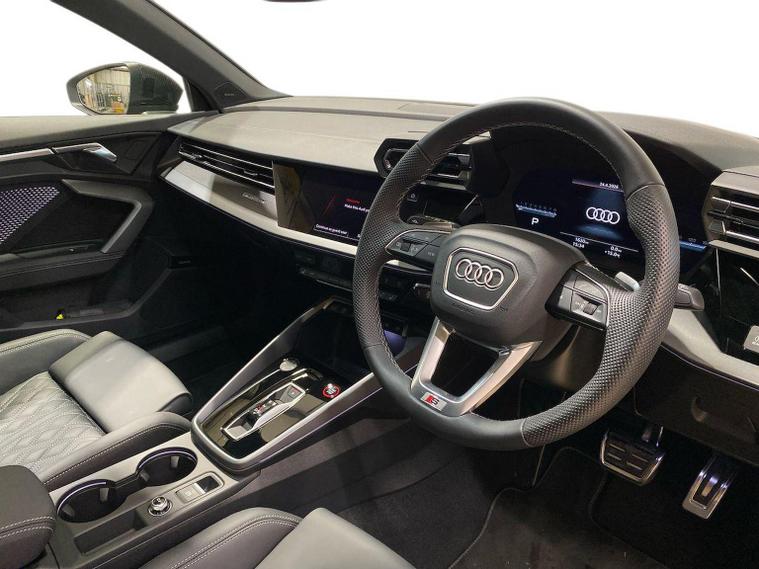 Reference: LB25FFC. Guildford Audi are offering a rare opportunity to own this AUDI S3 2.0 TFSi Vorsprung S-tronic 333ps. This 1 owner vehicle has full service history, was supplied by our group and has been maintained by us too. Since being returned to us it has been fully checked over by our fully trained, experienced and skilled technicians and is ready to go. ===================================================================== Sporty, compact, and refined, the S3 packs a turbocharged punch with sharp dynamics and premium design. It’s quick, comfortable, and well-equipped, perfect for those who want performance without going full RS. A strong entry into the Audi S range. This car is supplied with the following optional upgrades :- PANORAMIC GLASS SUNROOF which brings natural light and an airy cabin feel. BLACK STYLING PACK for a more aggressive and sporty look. . Standard features on this car include Integrated SATELLITE NAVIGATION with real-time routing and traffic updates. FULL LEATHER delivering a luxury feel in the cabin. CLIMATE CONTROL which automatically regulates cabin temperature for you. VIRTUAL COCKPIT so that you can customise the digital dashboard with maps, gauges, and media. CRUISE CONTROL to maintain a steady speed without constant pedal input. REAR PARKING SENSORS to warn of objects behind while reversing. REAR CAMERA for easier and safer reversing. HEATED FRONT SEATS to keep your comfortable in cold weather conditions. Plus lots more. ===================================================================== 150 MULTI POINT CHECK | AUDI PARTS |FACTORY TRAINED TECHNICIANS 12 MONTH MANUFACTURER BACKED WARRANTY & ROADSIDE ASSISTANCE. AUDI CONNECTED|HISTORY CHECKS ===================================================================== Lookers are an authorised representative for a wide range of award-winning car manufacturers, providing you with an unparalleled choice of quality and approved used cars, currently for sale. Our exceptional standards ensure you receive the best possible service when you purchase with us, ensuring peace of mind when you drive away with your new vehicle. With us representing so many great brands we are an excellent position to offer you a fair and transparent price for your part exchange. At Lookers, we care about our customers and want to ensure that the price you see is the price you pay. Our Transparent pricing policy simply means, honest, straightforward pricing offering our vehicles at the best price possible; ensuring no haggling or hassle for you.
