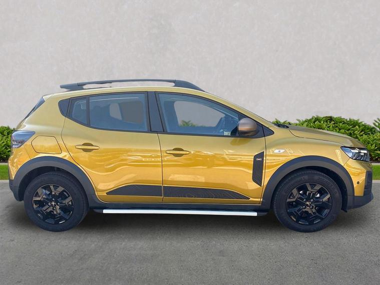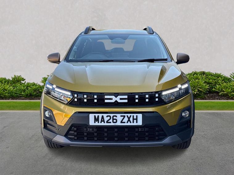 The 2026 Dacia Sandero Stepway Extreme is the rugged, top-tier version of the recently updated 2026 model. This latest iteration (compliant with GSR2 safety standards) features the brand's new "inverted-T" LED lighting signature and additional body protection made from Starkle®, a sustainable, speckled material that resists scuffs. With only 1, 000 miles, this vehicle is barely past its delivery checks and represents the most modern and adventurous version of the Stepway to date. The Extreme trim is the flagship, distinguished by Copper Brown exterior accents on the mirrors and fog lights, as well as topographic design decals on the doors. Inside, you get the premium MicroCloud upholstery, which is both soft to the touch and easy to clean—perfect for the "outdoor" lifestyle this car encourages.