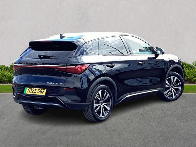 BYD ATTO 3 Design | 150kW 60kWh | Under 8, 000 Miles Experience the Future of Electric Driving with Full Warranty Peace of Mind Step into the future with this stunning BYD ATTO 3 Design. As the flagship trim of one of the world's leading EV manufacturers, this car combines bold "Dragon Face" styling with a revolutionary interior and industry-leading battery technology. With only 7, 563 miles on the clock, this vehicle is barely broken in and presents a rare opportunity to own a nearly-new premium EV at a significant saving. The Vital Statistics Model: BYD ATTO 3 Design Powertrain: 150kW Electric Motor (204 PS) Battery: 60.5kWh "Blade" Battery (Cobalt-free & Ultra-safe) Range: Up to 260 miles (WLTP combined) Mileage: 7, 563 Miles Transmission: Automatic Why Choose the ATTO 3 Design? The Design trim is the highest specification available, packed with features that make every journey an event: The Revolutionary Blade Battery: BYD’s industry-leading battery tech is designed for maximum safety, longevity, and efficiency. Rotating 15.6" Touchscreen: A world-first infotainment screen that rotates from Landscape to Portrait at the touch of a button. Electric Tailgate: Convenience at its finest for easy loading. PM2.5 Air Purification System: Keep the cabin air fresh and clean for all passengers. Multi-Colour Ambient Lighting: The lights even sync to the beat of your music! Premium Tech & Safety Panoramic Sunroof: Floods the gym-inspired interior with natural light. 360° Surround View Camera: Crystal clear visibility for effortless parking. Full Suite of ADAS: Includes Adaptive Cruise Control, Blind Spot Detection, and Lane Keep Assist. V2L (Vehicle-to-Load) Capability: Use your car as a giant power bank to charge external appliances! Warranty & Peace of Mind This vehicle comes with the remainder of the BYD Manufacturer Warranty, ensuring you are fully covered for years to come. Buy with the total confidence that you are protected by one of the most comprehensive EV warranties in the industry. Condition & Ownership Ultra-Low Mileage: Just 7, 563 miles from new. Pristine Condition: Carefully maintained, smoke-free, and pet-free. Rapid Charging: Capable of charging from 10% to 80% in approximately 44 minutes. "The ATTO 3 isn't just an EV; it's a conversation starter. With its unique interior, safe Blade Battery, and high-spec finish, it’s the smartest electric move you can make."